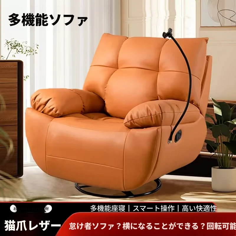 高級レザー製の多機能ソファ!調整可能なトランスフォーマブルベッドとコンビネーション、壁にぴったりフィット。家庭用シアターやリビングに最適な宇宙船スタイルのカラーブロックデザイン。快適な空間を演出します!