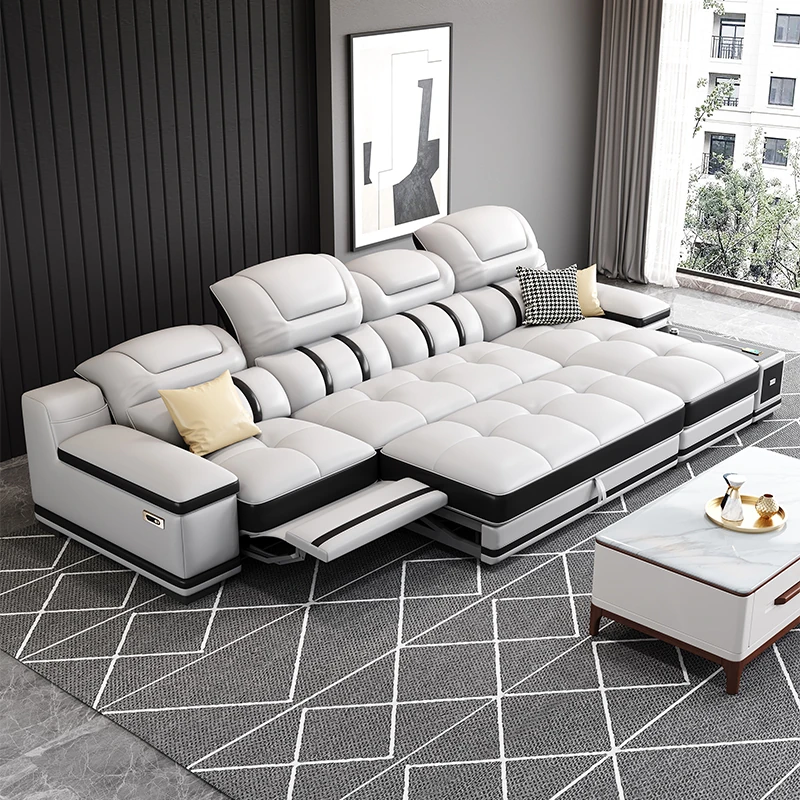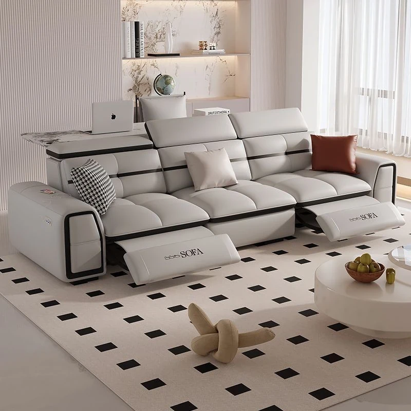 2025年新作!多功能スマート電動伸縮ピアノキー本革ソファ - イタリアンスタイルのシンプルで洗練されたリビングルーム用ソファ!おしゃれで快適な空間を演出します。