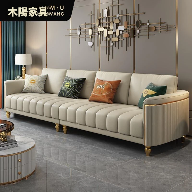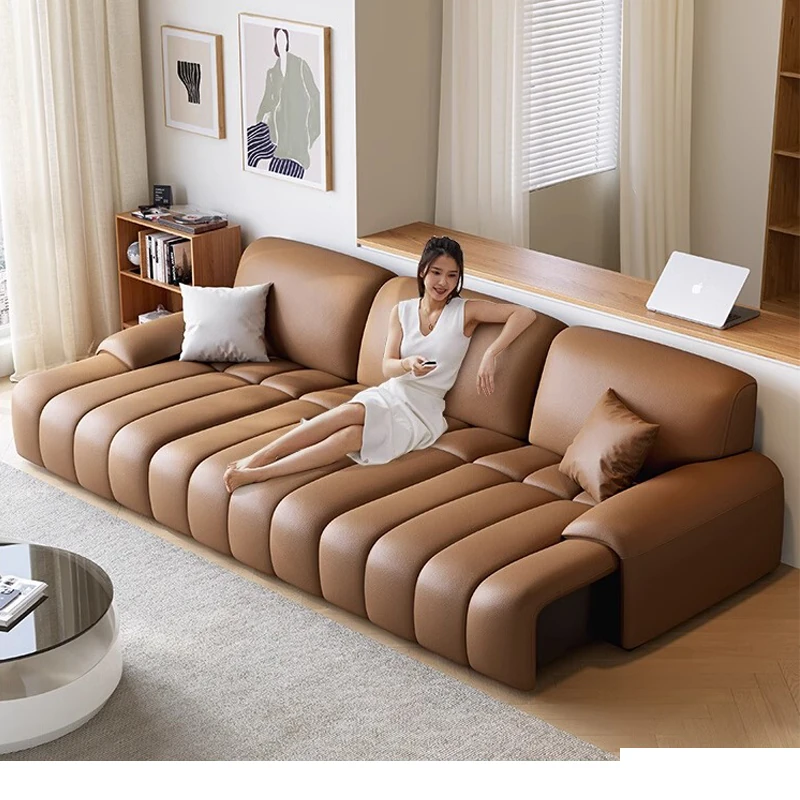 イタリアンミニマリスト・ローランス本革ソファ|上質な一層牛革使用|デザイナーによる豪華なヴィラ向け|広々としたリビングにぴったりな大サイズの直排ソファ。快適さとスタイルを兼ね備えた一品!