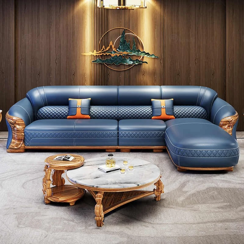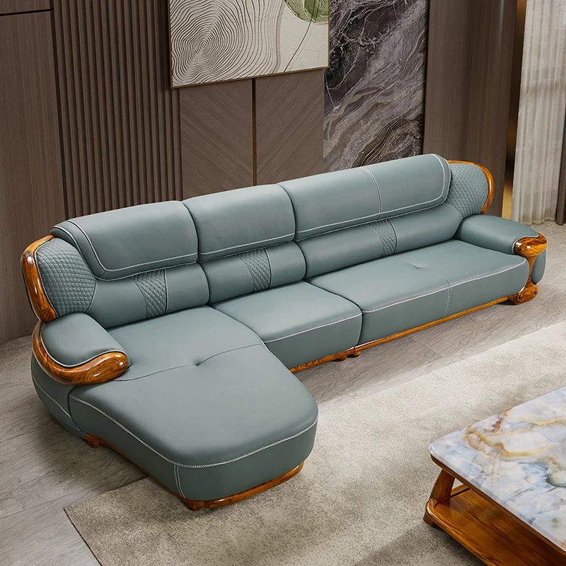 新中式アフリカンウッディー小ウゴチャン木製創造設計の本革特厚牛革コーナー鯉ソファー