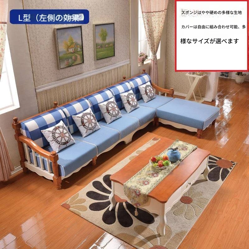 IL地中海スタイルの無垢材ソファセット|L型・U型コーナー布張り|2人掛けから6人掛けまで対応|美しいホワイトカラーでお部屋を明るく演出!快適な座り心地をぜひお試しください!