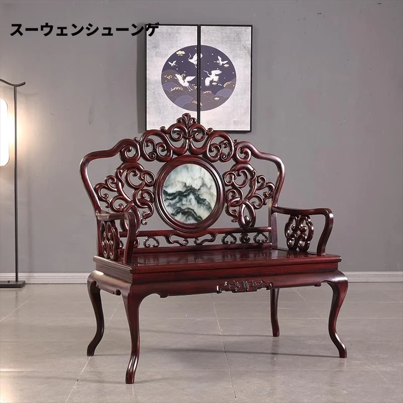 W7典雅紅木古家具 酸枝材質の欧州風 明式ダブルチェア 実木製 アンティーク風 バックチェア リビングルーム用ソファとしても最適!高級感溢れるデザインでおしゃれな空間を演出します。