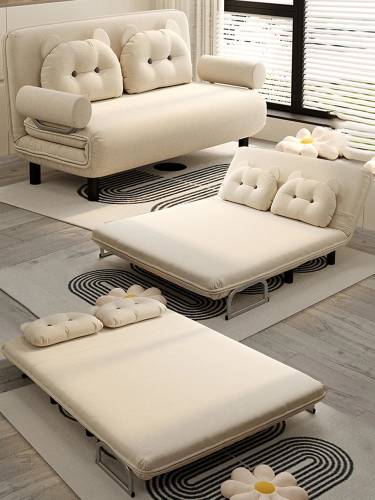 折りたたみ式マルチソファベッド - リビングに最適な小型1.2mシングル&1.5mダブルサイズ、頑丈なスラットフレームと天然木使用で、コンパクトな空間を有効活用!