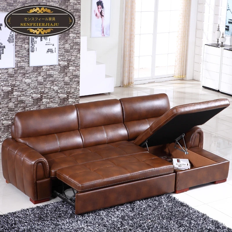 収納力抜群の本革L字型カウチソファ!小さな部屋にもぴったりなコンパクトデザインで、ソファとベッドの2WAY仕様。多機能で快適なリビング空間を演出します。