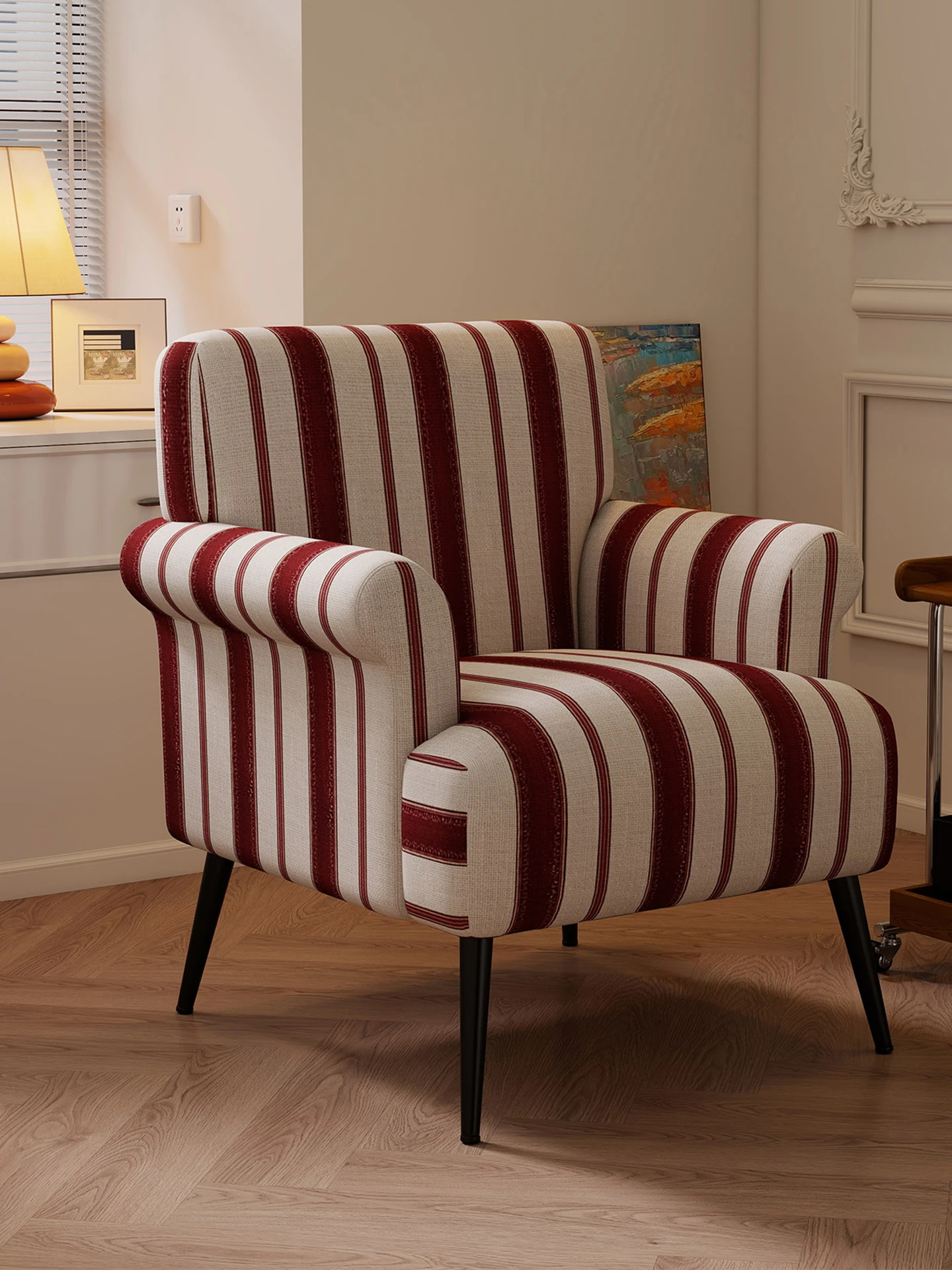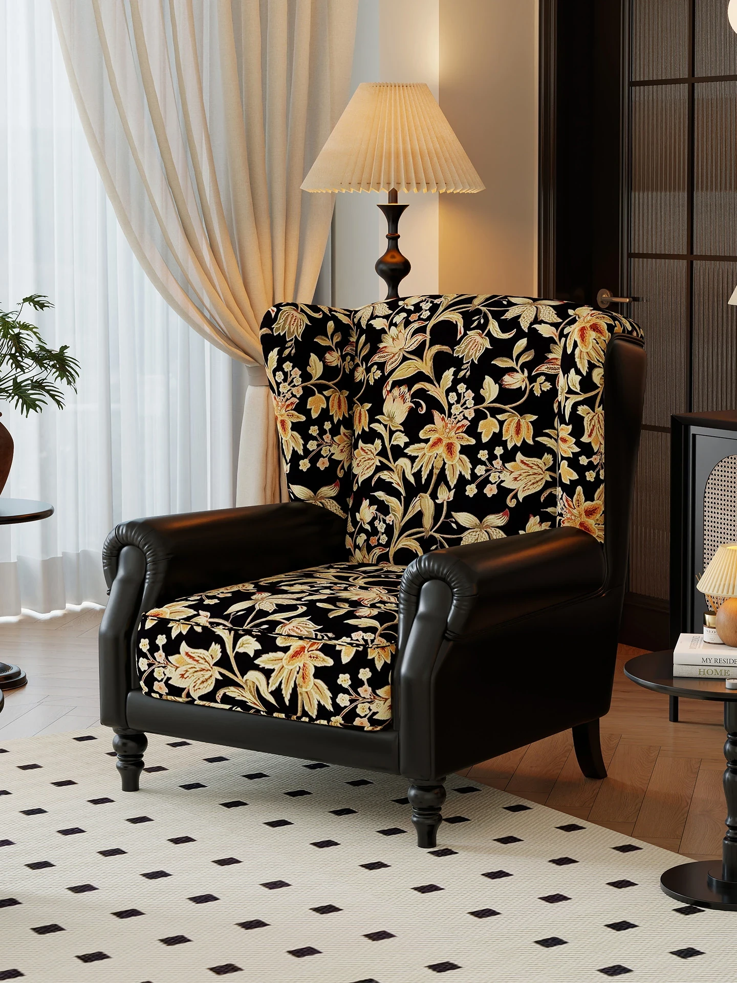 赤ウ休闲ソファチェア|実木製・高背・家庭用デザイナーフレンチヴィンテージスタイル|軽奢華・リラックスできる一人掛け椅子