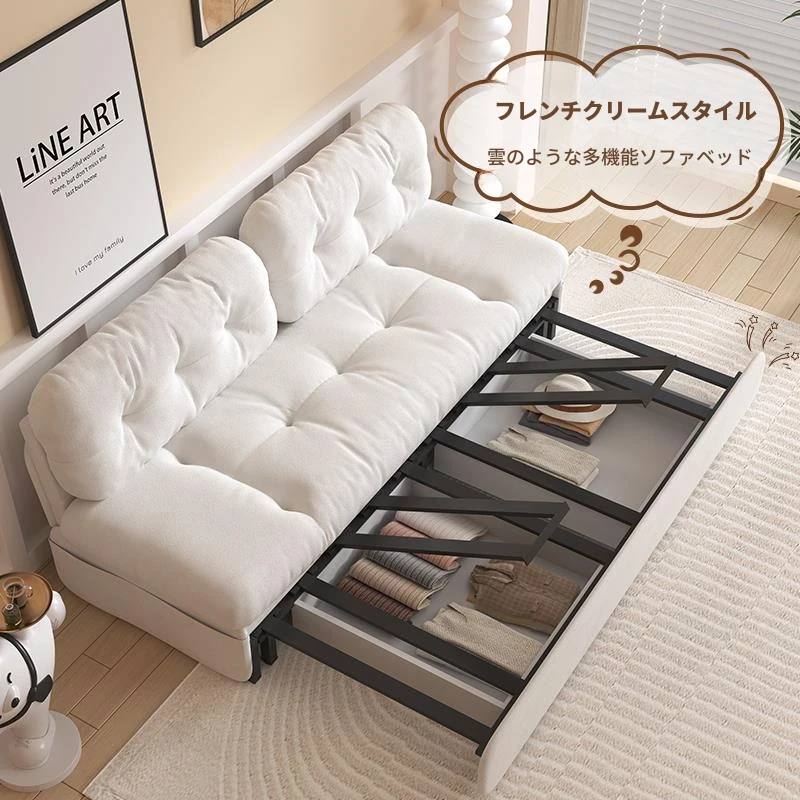 【香港送料無料】フレンチスタイルのソファベッド♪雲のような柔らかさで、リビングにぴったり!狭いお部屋にも最適な折りたたみ式・収納付きの2024年新作!快適な睡眠とおしゃれな空間を実現!