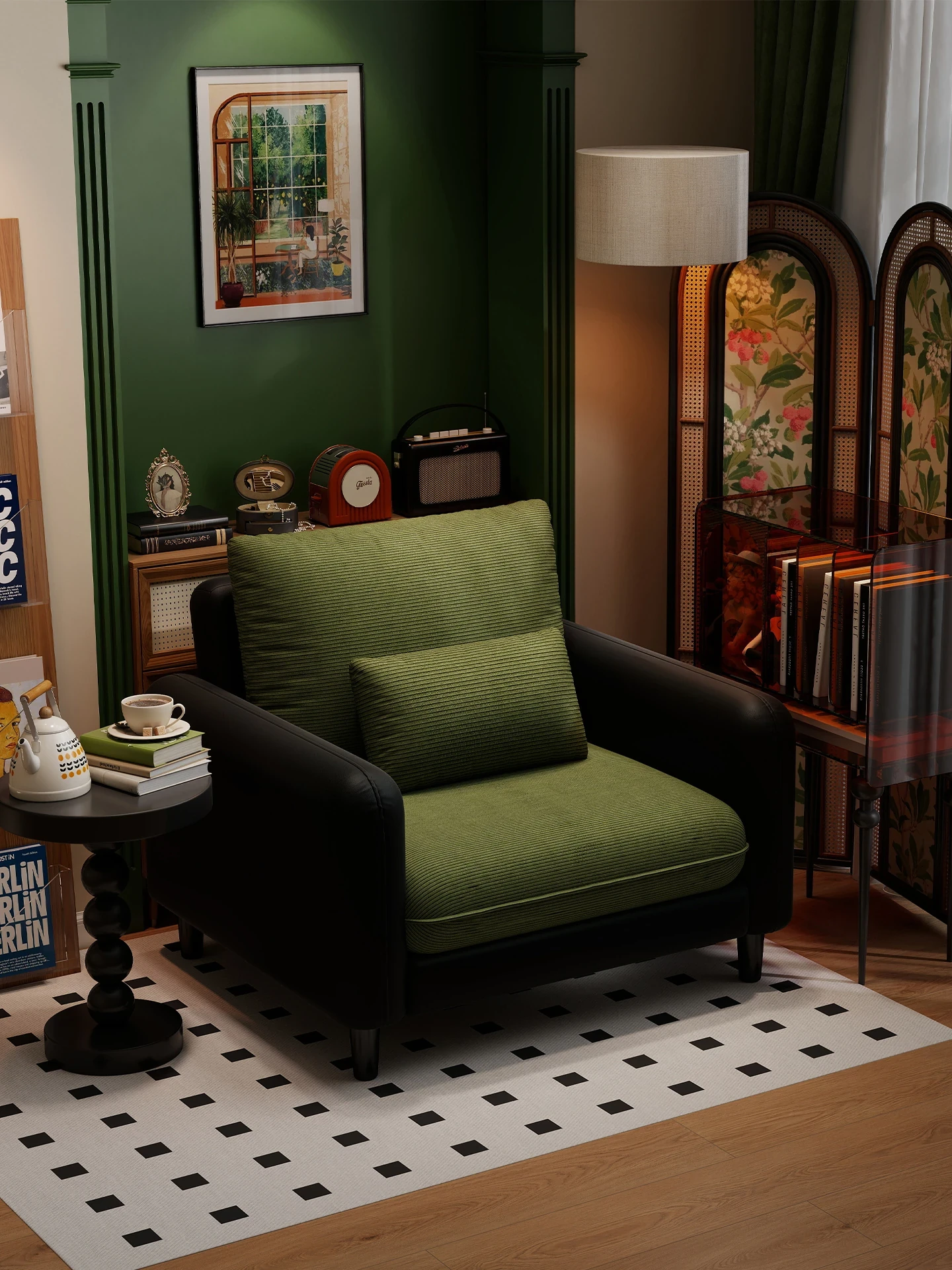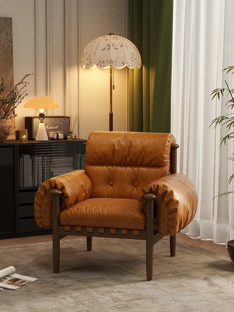 厚めのクッションで極上の座り心地!高級感溢れるデザインのリビング・バルコニー用レトロ風一人掛けソファ。おしゃれな空間を演出し、くつろぎのひとときを提供します。