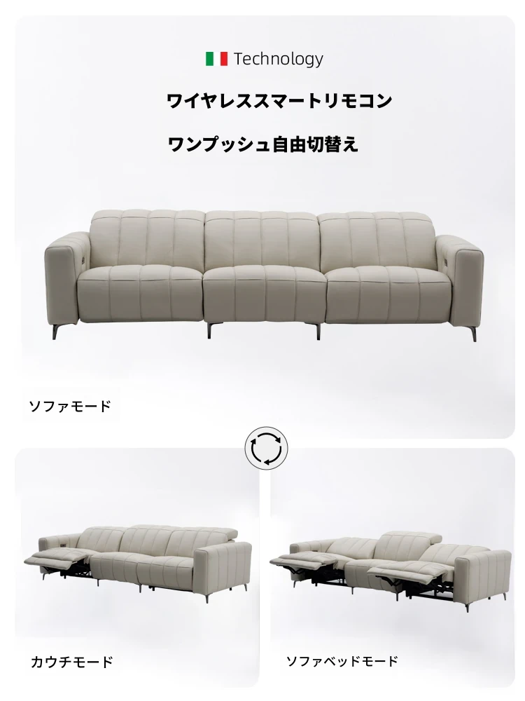 ローレンス電動ソファ 多機能3人掛け 本革ソファ リビングに最適 2025年新作 電動ベッドに変身 伸縮式で快適なひとときを提供!