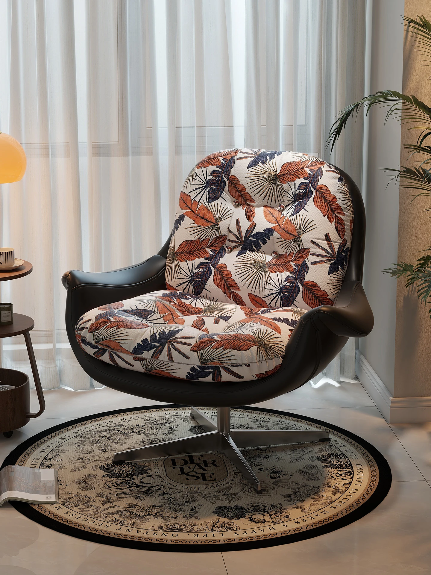 イタリアンスタイルの回転式一人掛けソファチェア - リラックスできる家用ラウンジチェア、軽やかなラグジュアリー感でバルコニーにも最適!おしゃれなオフィスにもぴったりなデザインです。