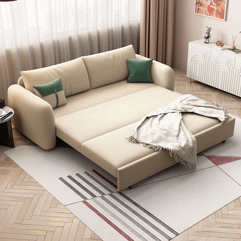 [香港送料無料]多機能ソファベッド!座っても寝ても使える折りたたみ式、コンパクトなモダンデザインのクリームカラー科技フローニング生地。おしゃれで実用的な空間を演出します!