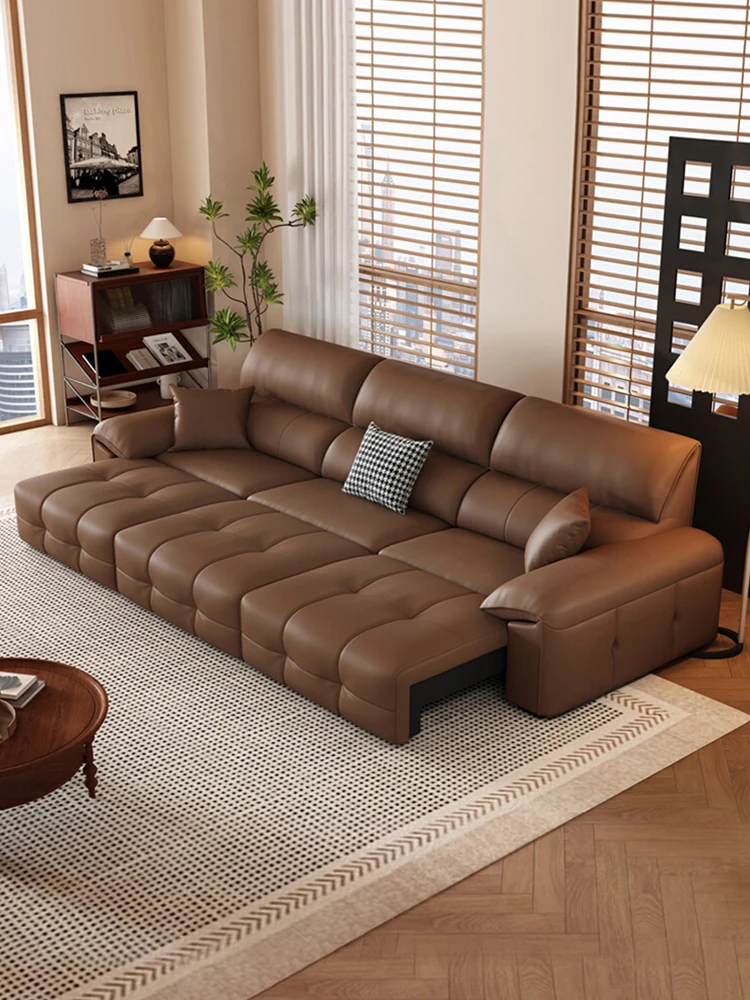 2025年新作!レトロオイルワックス本革ソファベッド。折りたたみ式で多機能、小スペースにも最適!リビングでのくつろぎタイムにピッタリな、寝床としても使える便利なアイテムです!