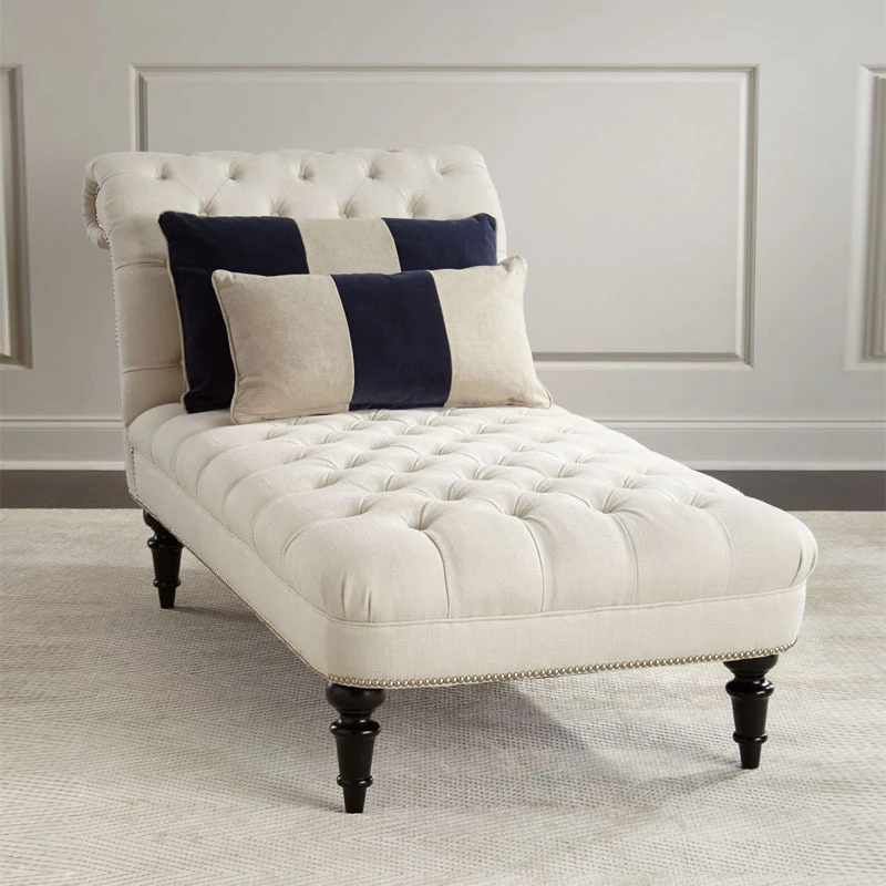アメリカンスタイルのクッション付きリクライニングチェア|布製・コットンリネンのエレガントな貴妃椅子|フレンチスタイルのリビングや寝室に最適なラウンジソファ|リラックスしたいあなたにぴったりのアイテム!