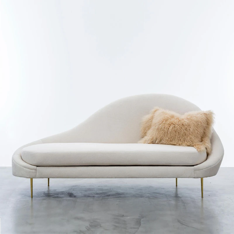 北欧モダンの高級感あふれる貴妃椅子|アメリカンスタイルの布製ソファ|曲線美の小型シンプルデザイン|金属フレームのリラックスチェアで、スタイリッシュな空間を演出!
