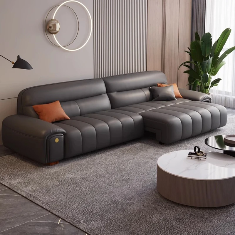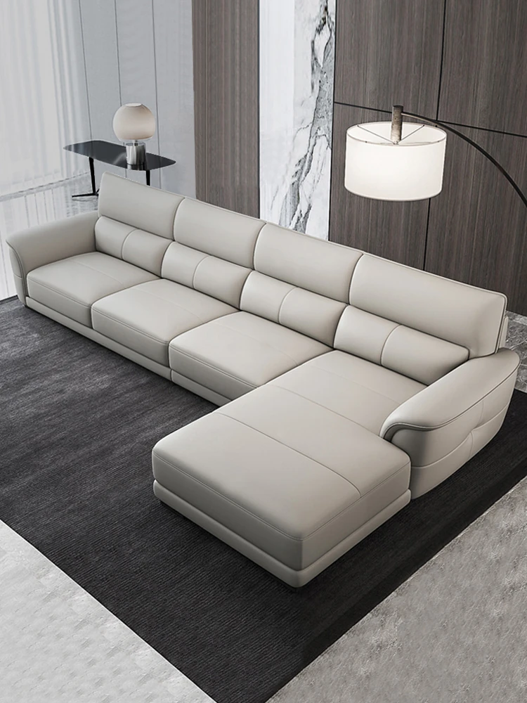 Modern Genuine Leather Sofa - Stylish L-Shaped Chaise Lounge for Small Spaces, Versatile Corner Combination for Luxurious Living Rooms.