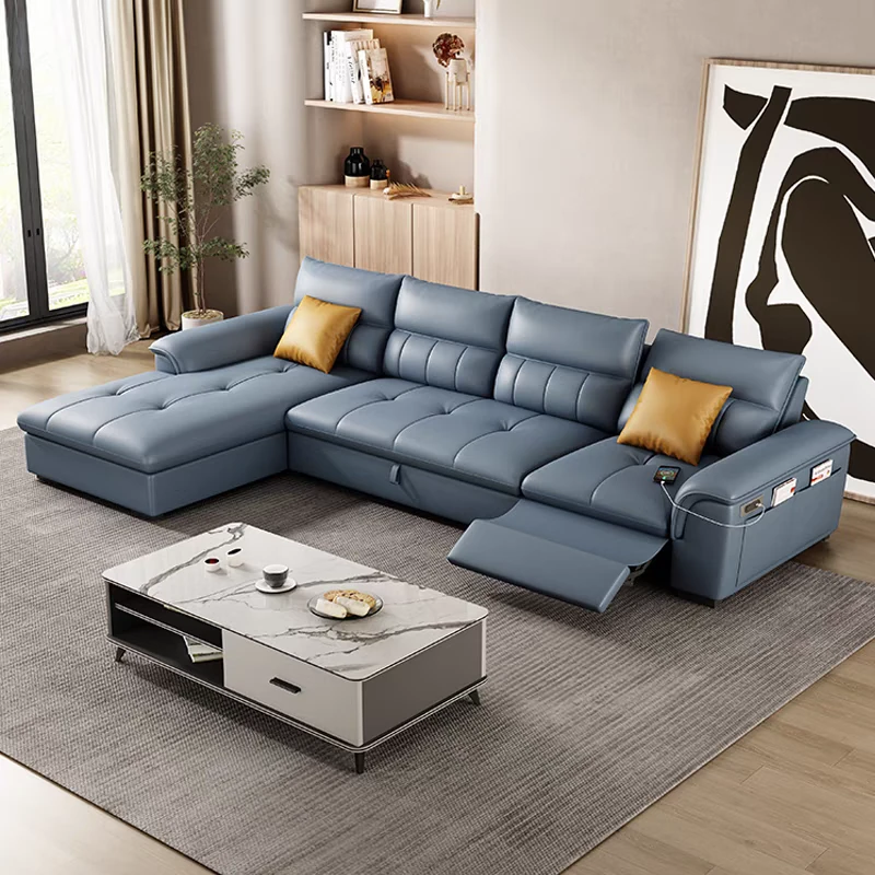 Modern Italian Minimalist Electric Sofa for Living Room - New Luxury Chaise Lounge with Cat Scratch Resistant Genuine Leather, Multi-functional Design Ideal for Small Spaces