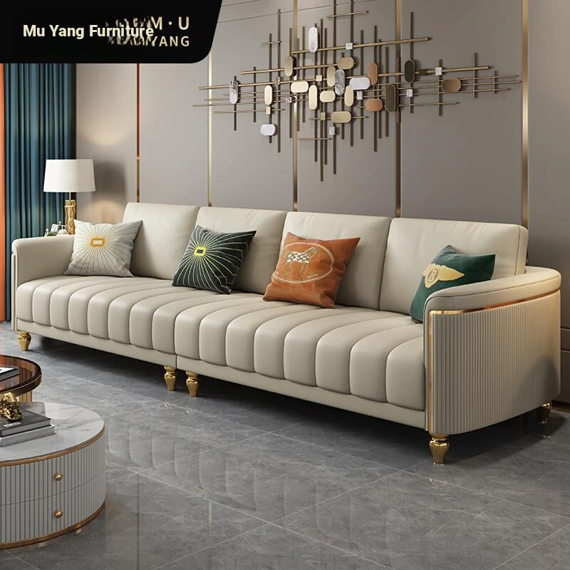Scandinavian Modern Leather Sofa Set - High-Quality Four-Seater for Small Living Rooms & Offices, Crafted with Premium Top-Grain Cowhide, Perfect for Stylish Comfort and Business Meetings.