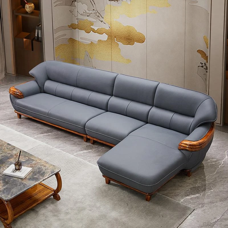 Premium Solid Wood Corner Sofa Set with Genuine Leather - Elegant and Versatile for Any Living Space - 2024 New Arrival