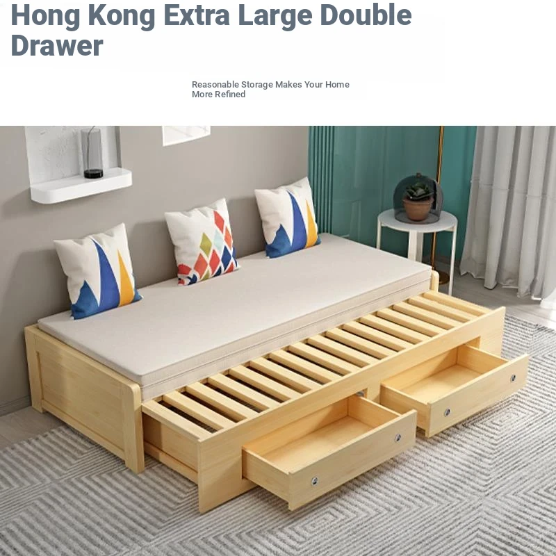 Free Shipping to Hong Kong: Multifunctional Solid Wood Sofa Bed - Space-Saving Foldable Design for Living Room, Perfect for 1.2m and 1.5m Small Apartments, Ideal for Sitting and Sleeping.