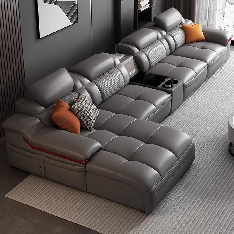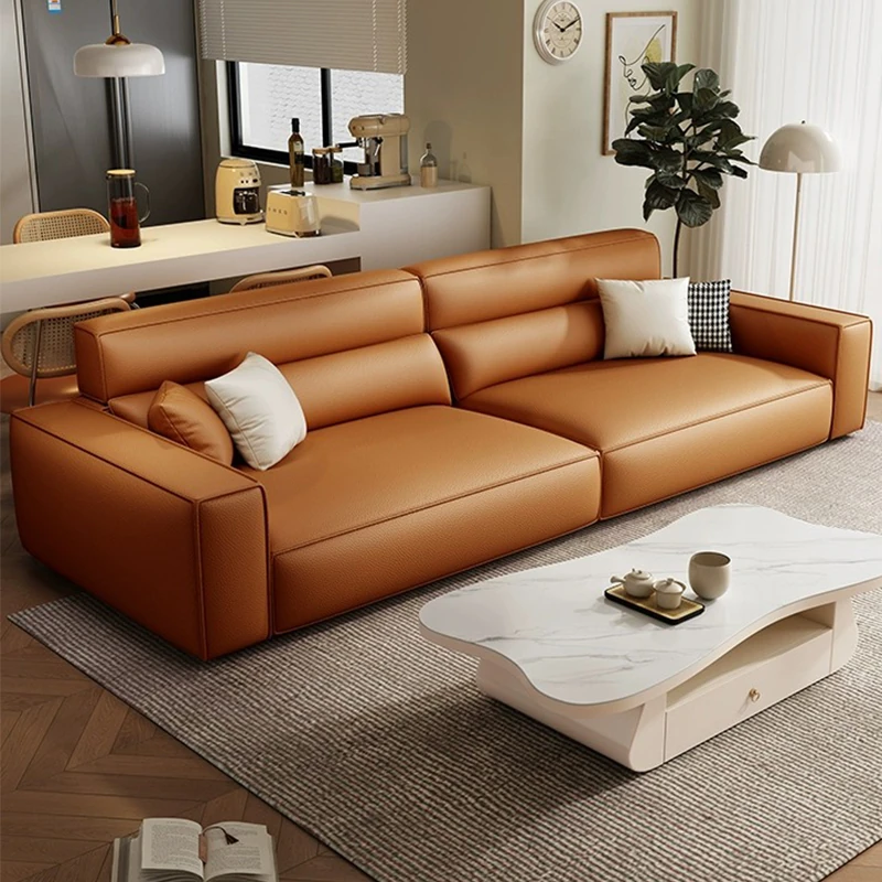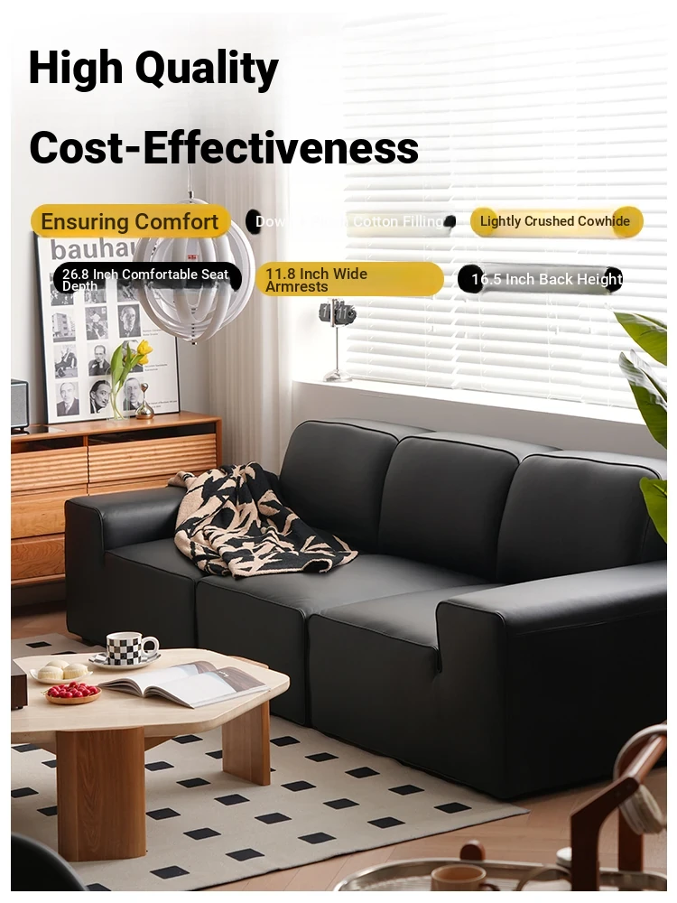 Genuine Leather Sofa Set - Premium Top-Grain Cowhide Corner Combination for Spacious Living Rooms - Scandinavian Minimalist Modern Design
