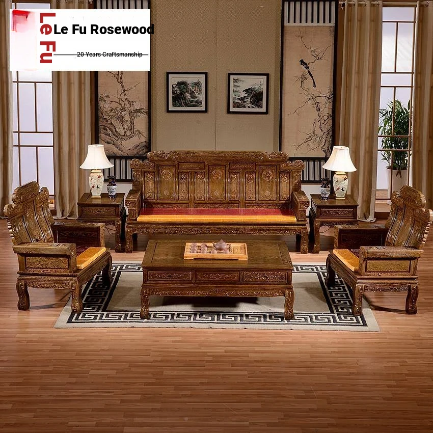 Elegant Chinese Zitan Rosewood Full Wood Sofa Set - Vintage Style Carved Design for Small to Medium Spaces - Perfect for Your Home Decor ZN-0