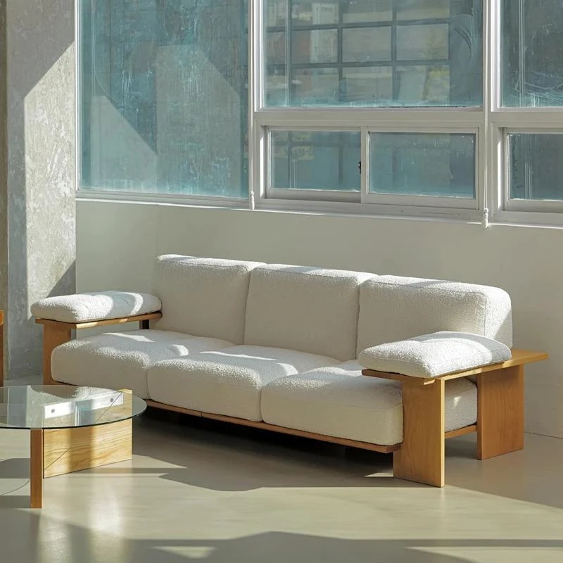 Nordic Solid Wood Fabric Sofa for Small Living Rooms – Modern Minimalist Designer Creative Lamb Fleece 3-Seater Sofa, Perfect for Cozy Spaces!