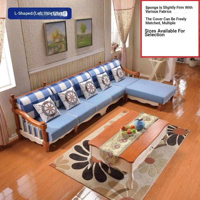 IL Mediterranean Solid Wood Sofa Set - L-Shaped & U-Shaped Corner Fabric Sofa for 1 to 6 People - Elegant White Design for Stylish Living Rooms