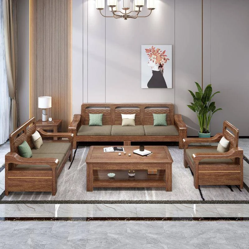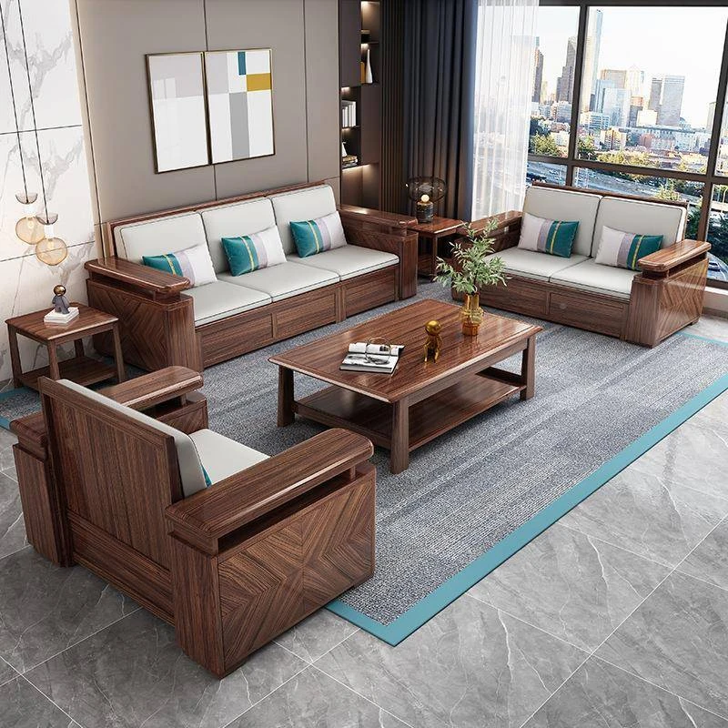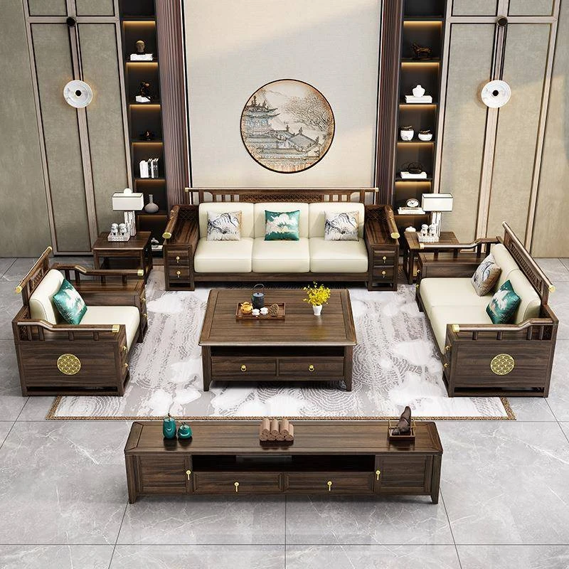 Z-Zhuru1 New Chinese Style Imported Walnut Solid Wood Modern Minimalist Sofa Set - Versatile for Winter and Summer with Storage, Perfect for Guest Use