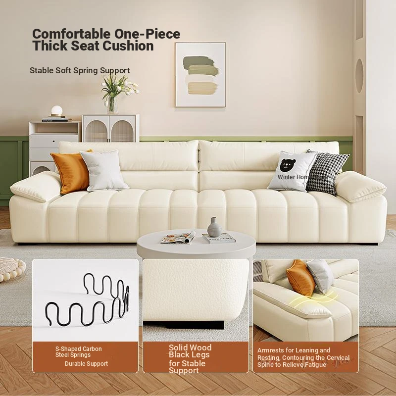 Modern Minimalist Three-Seater Sofa - 2025 New Arrival, Stylish Genuine Leather Couch for Small Living Rooms, Perfect Home Furniture