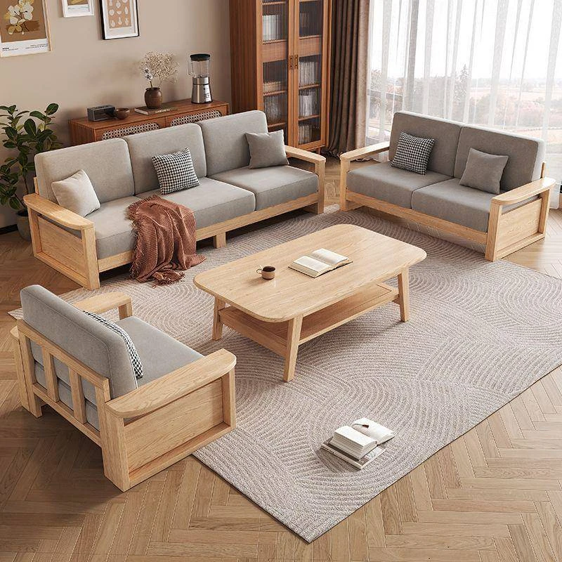 Modern Solid Ash Wood Sofa Set for Small Spaces - Versatile Winter and Summer Design, Minimalist Scandinavian Furniture with Storage Solutions for Your Living Room