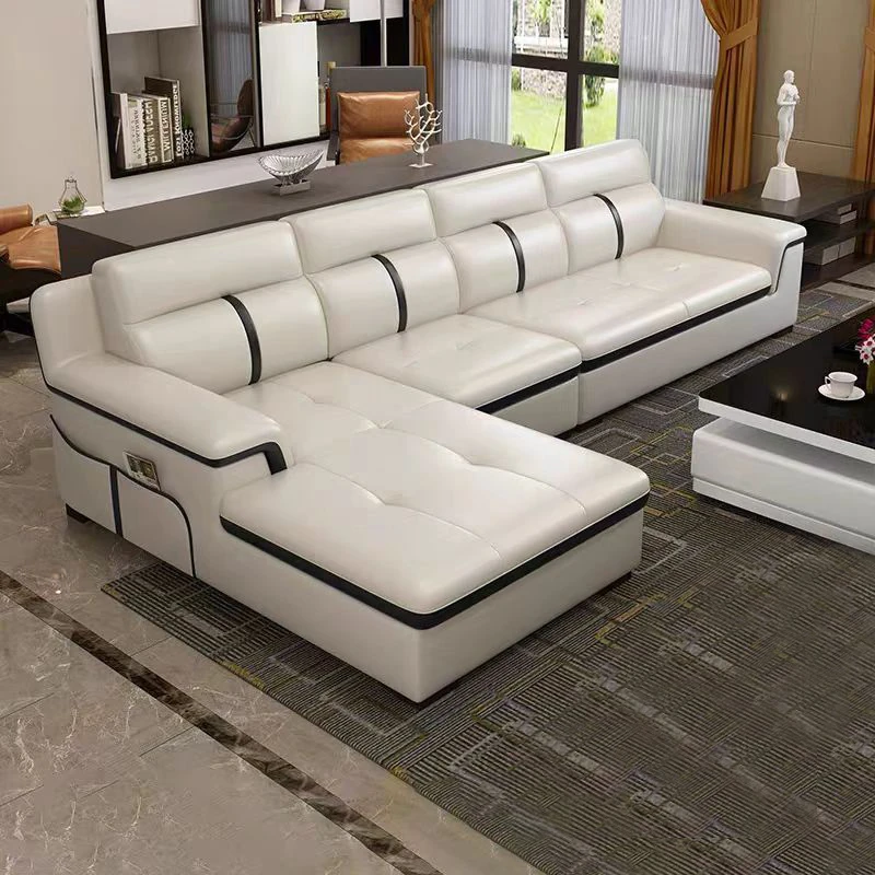 Modern Minimalist Genuine Leather Sofa - Top Grain Cowhide Corner Latex Upholstery for Living Rooms of All Sizes - Premium Furniture from Foshan