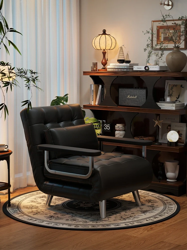2025 New Vintage Foldable Sofa Bed - Compact Single Design, Retro Black Multifunctional Sofa for Small Spaces