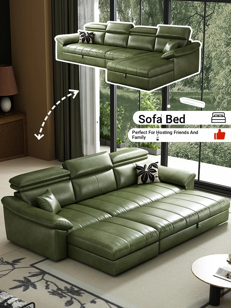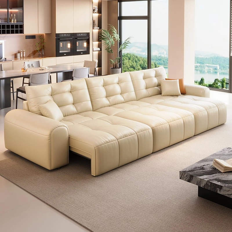 Luxury Genuine Leather Electric Sofa Bed - Stylish 2-in-1 Dual Purpose Design for Living Room - Space-Saving Pull-Out Sofa for Couples and Families - Modern and Versatile Comfort Solution!