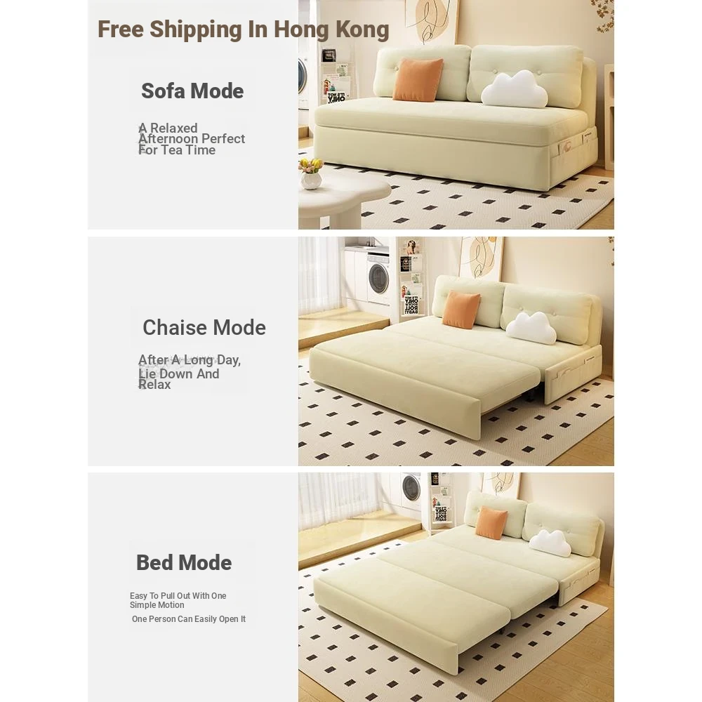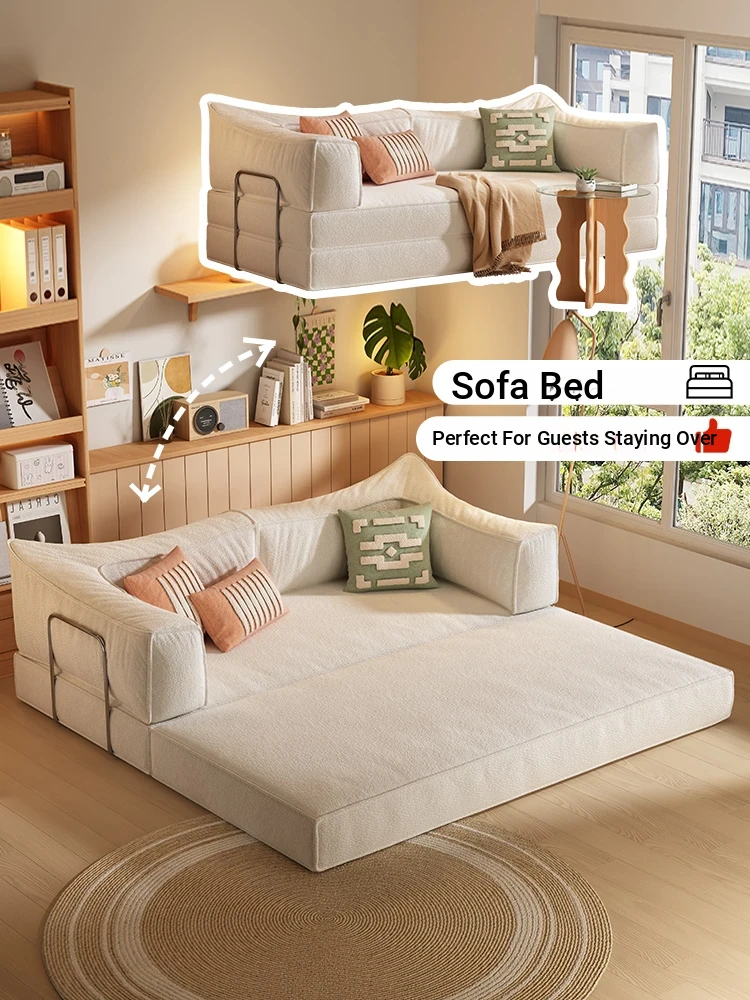 【Free Shipping to Hong Kong】2024 Premium Cream Style Sofa Bed - Folding Dual-Use for Small Spaces, Perfect for Balconies and Cozy Nooks