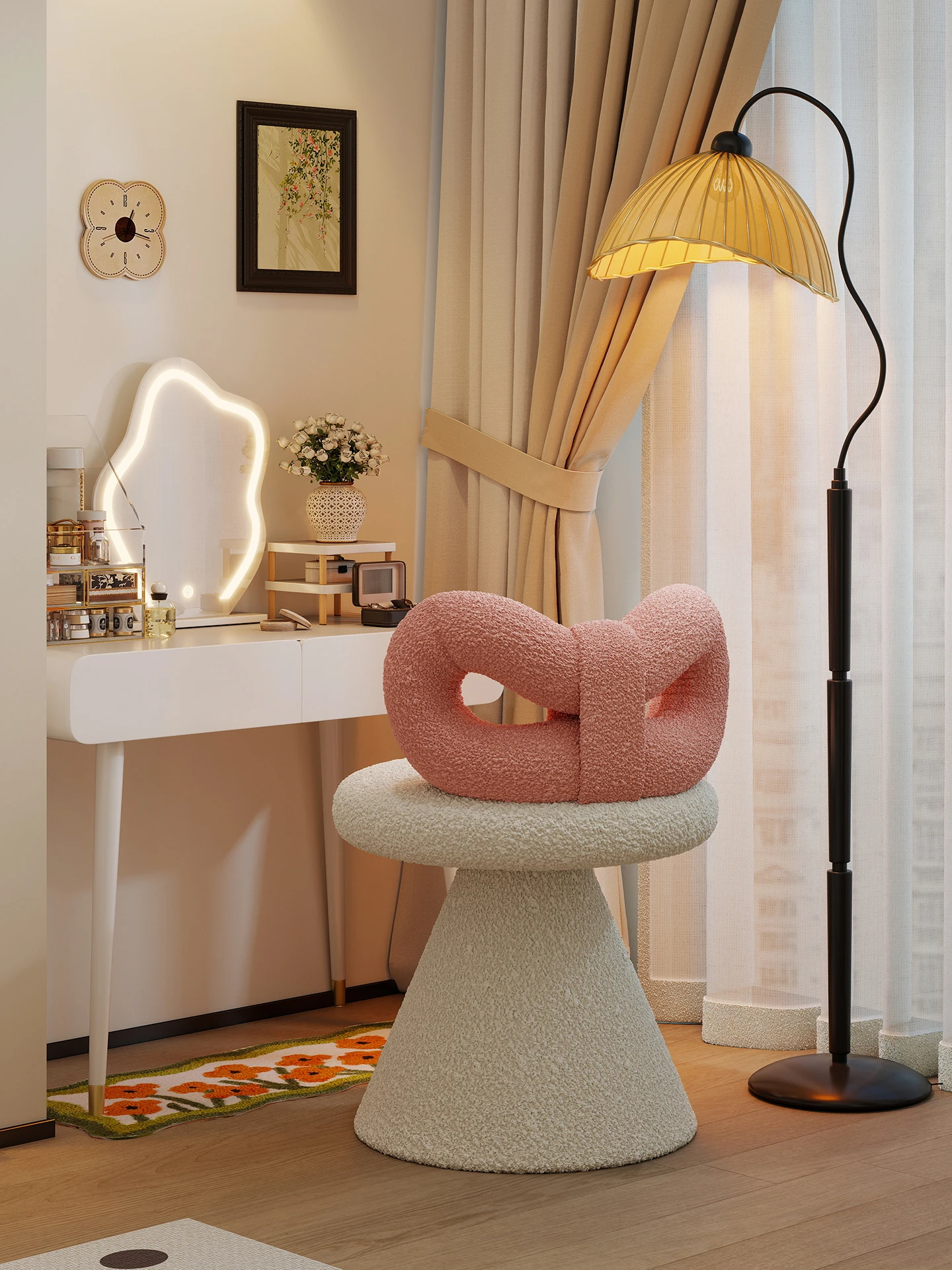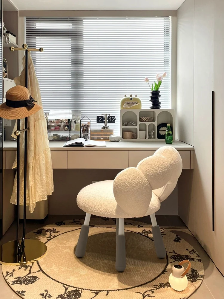 Creamy Rotating Makeup Stool with Luxurious Lamb Fleece – Perfect for Bedrooms, Stylish for Girls, Ideal for Nail Art and Glamour.