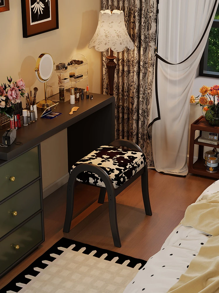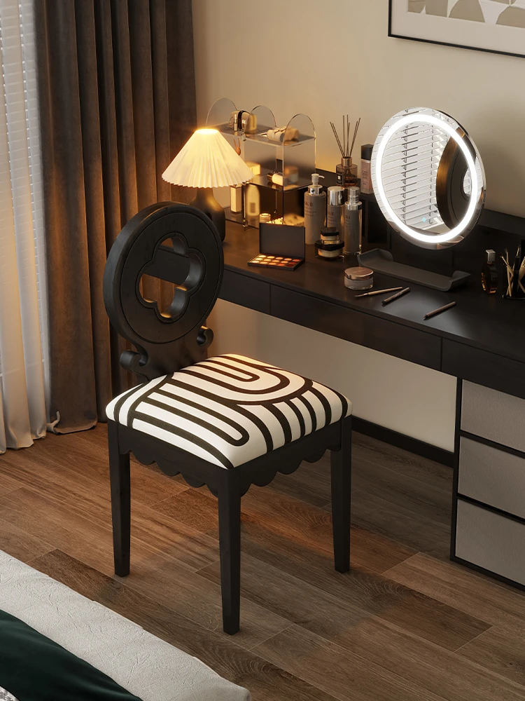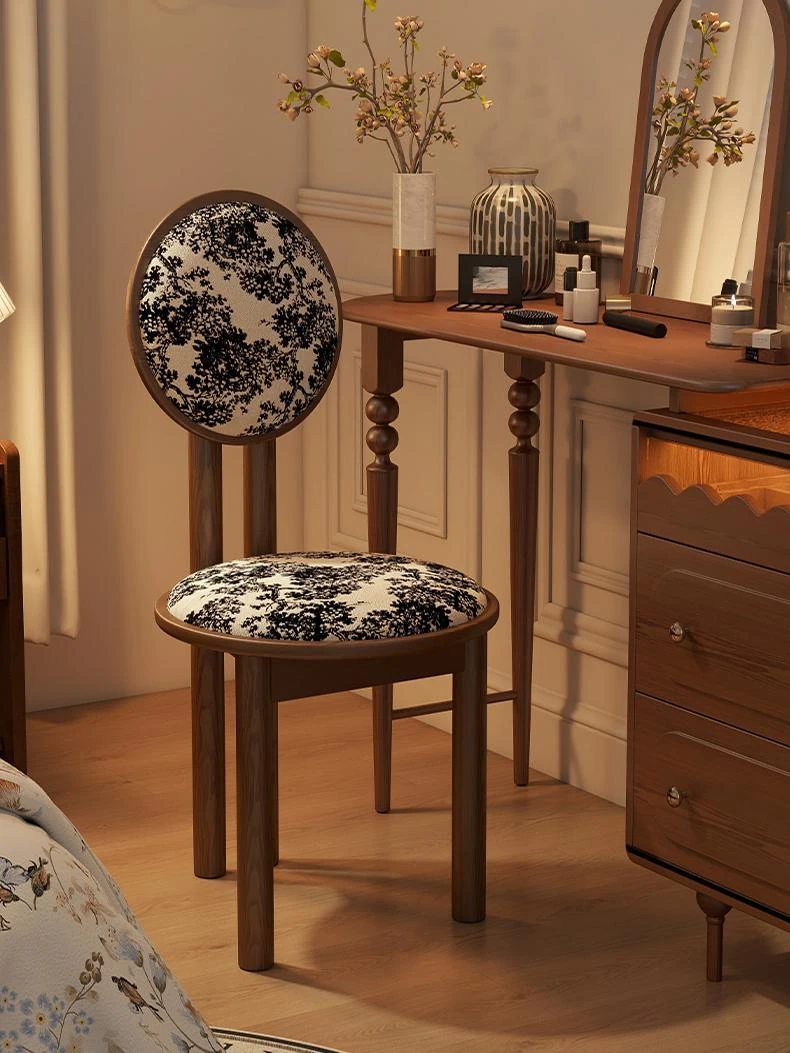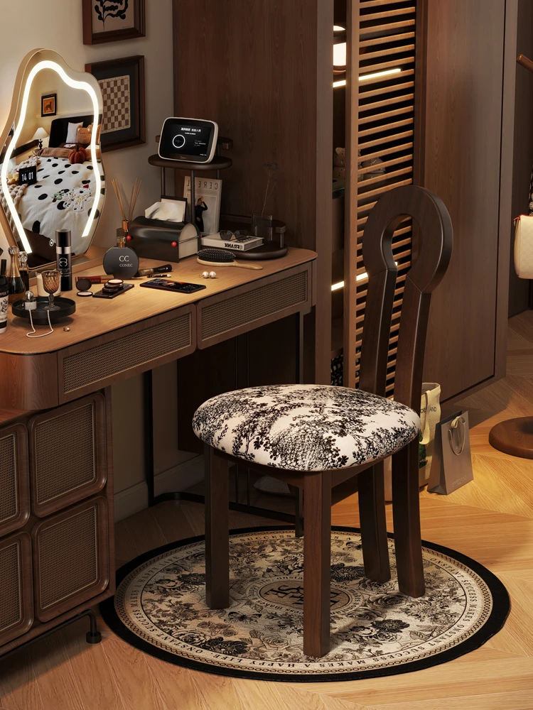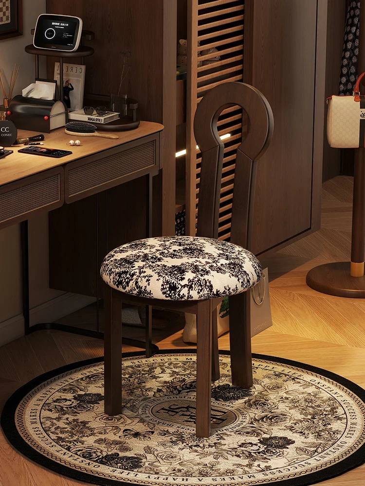 Luxury Solid Wood Vintage Makeup Vanity Stool - Elegant Dressing Table Chair for Bedroom and Walk-in Closet - Creative Design Makeup Bench