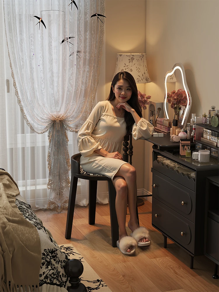 Nordic Luxury Makeup Chair with Rotating Backrest - Elegant Vanity Stool for Bedroom, Perfect for Home Use and Glamorous Grooming Sessions