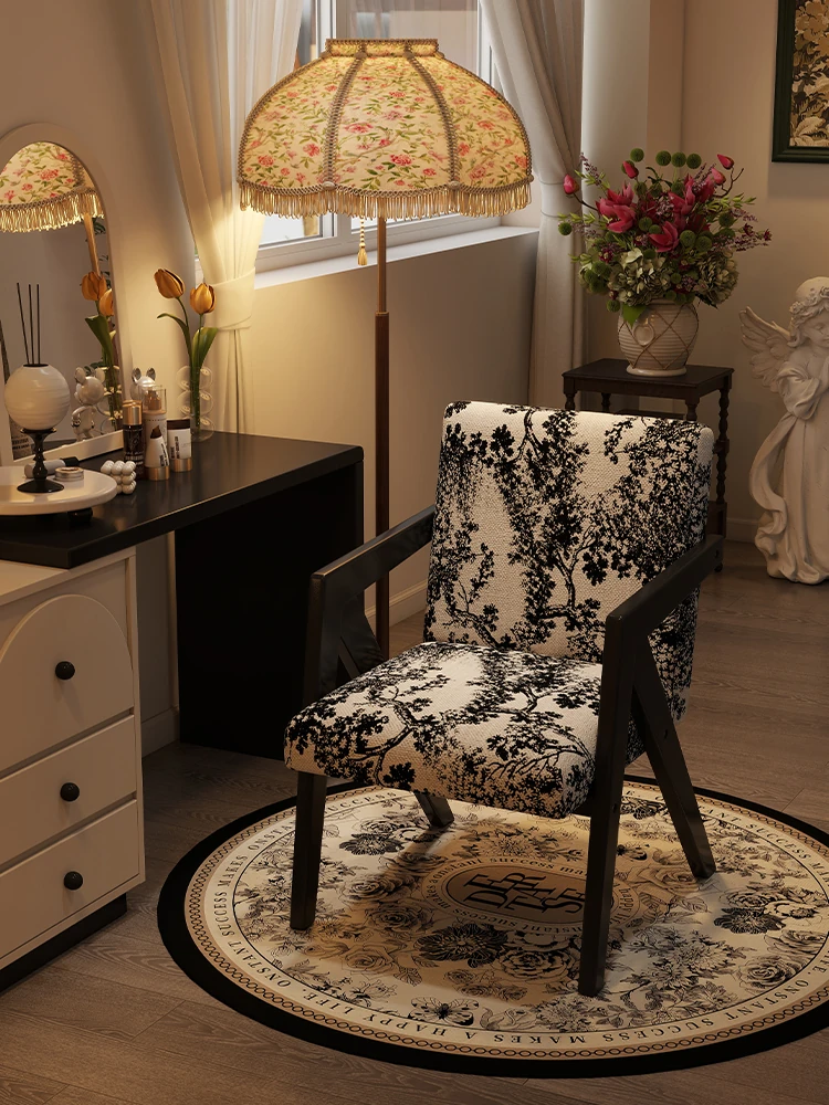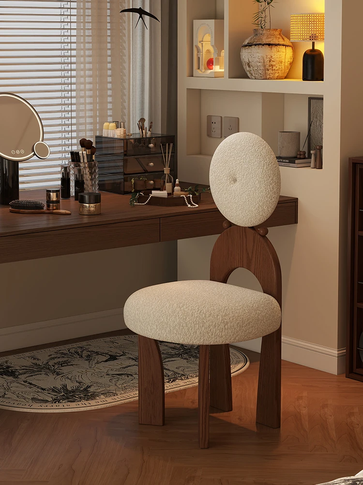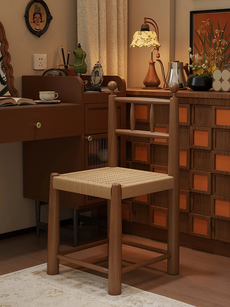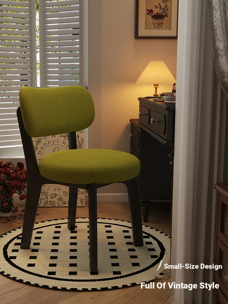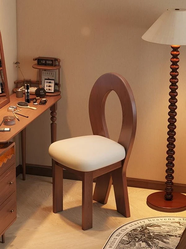 Vintage Solid Wood Makeup Chair - Stylish Dressing Table Chair for Girls' Bedrooms with Backrest, Chic Retro Design for a Touch of Elegance