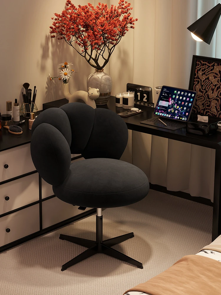 Elegant Bedroom Makeup Chair for Women - High-End Rotatable Dressing Stool with Backrest, Perfect for Vanity Use, Stylish and Comfortable Home Makeup Seat
