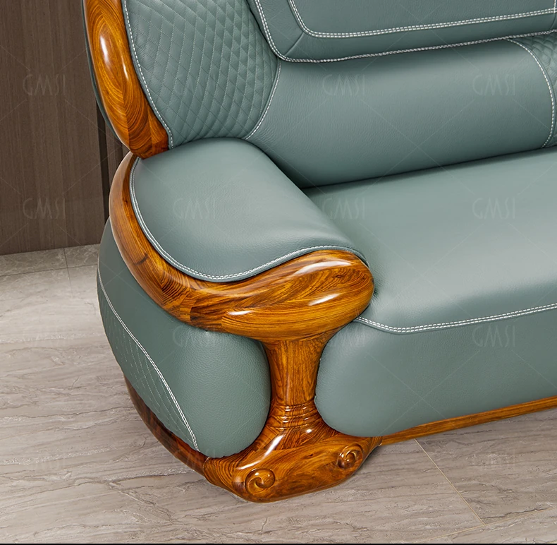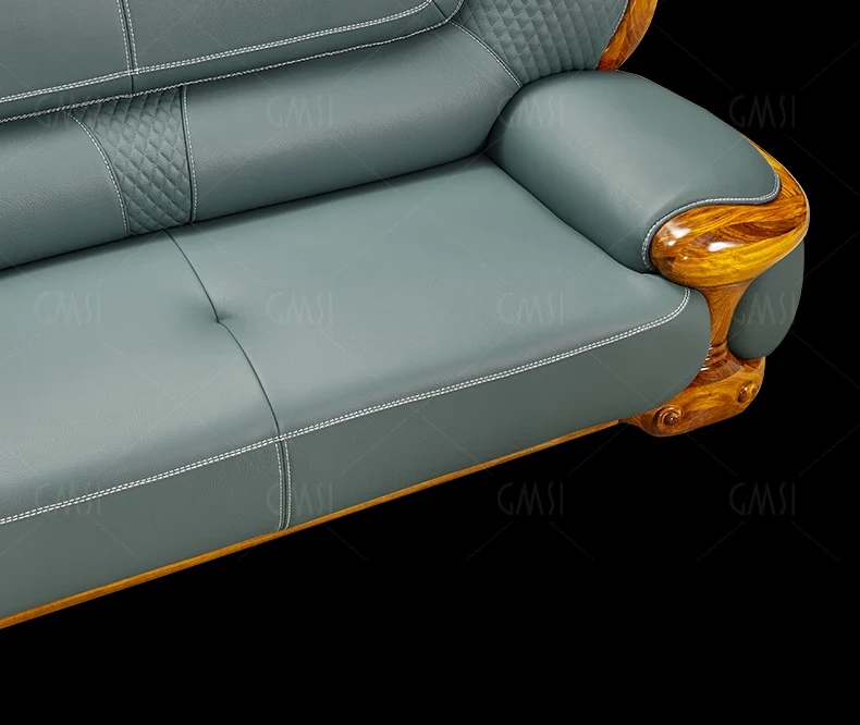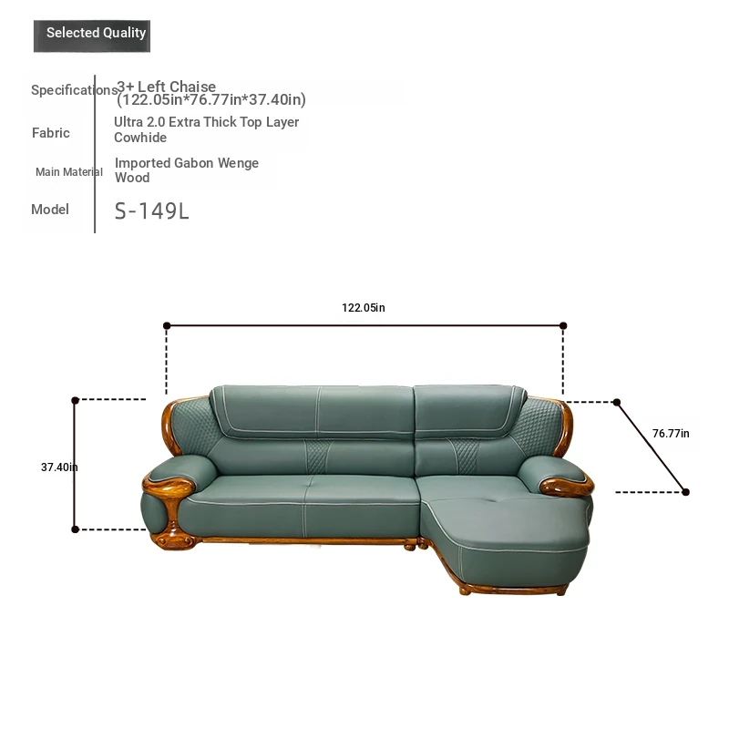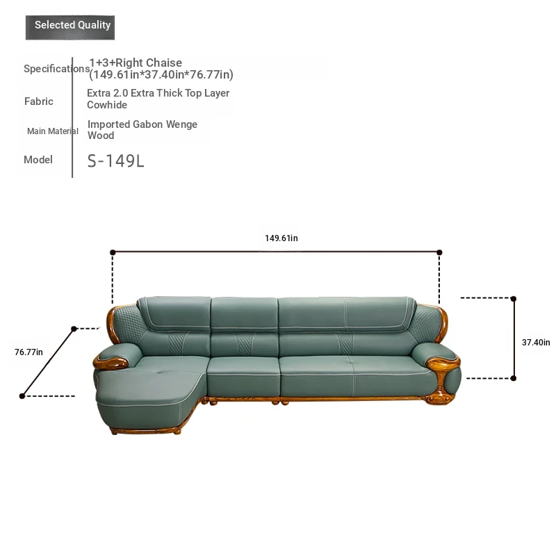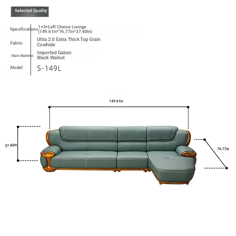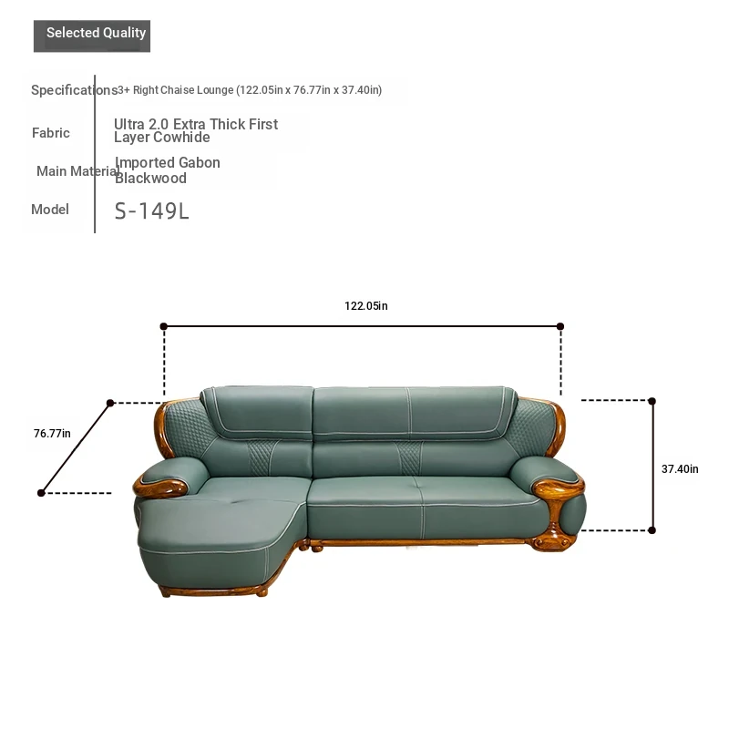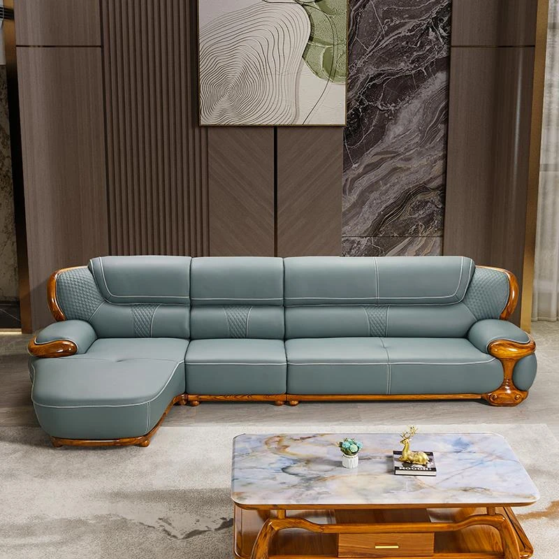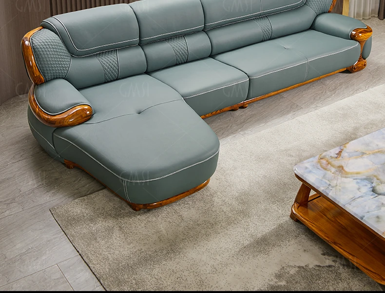 2024 New Arrival: Modern Chinese Style Black Gold Wood Genuine Leather Corner Sofa - Luxurious Top-Grain Leather & Solid Wood Design for a Minimalist Living Room