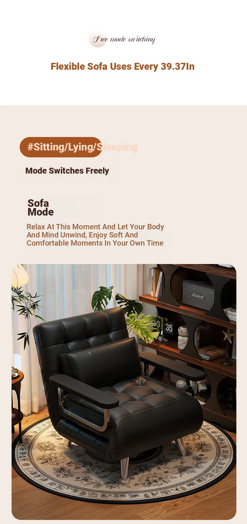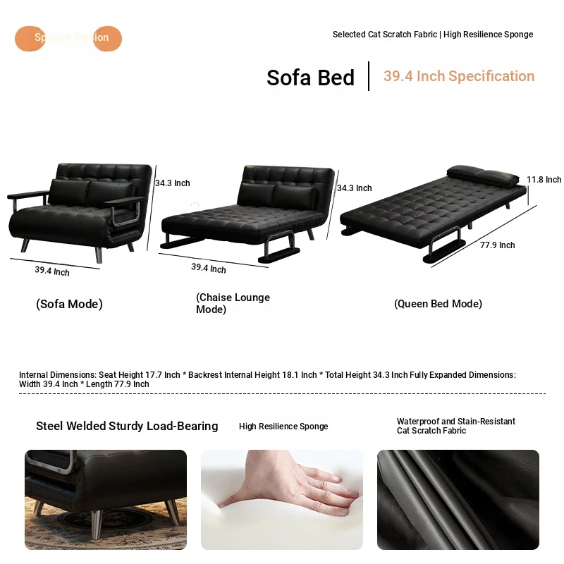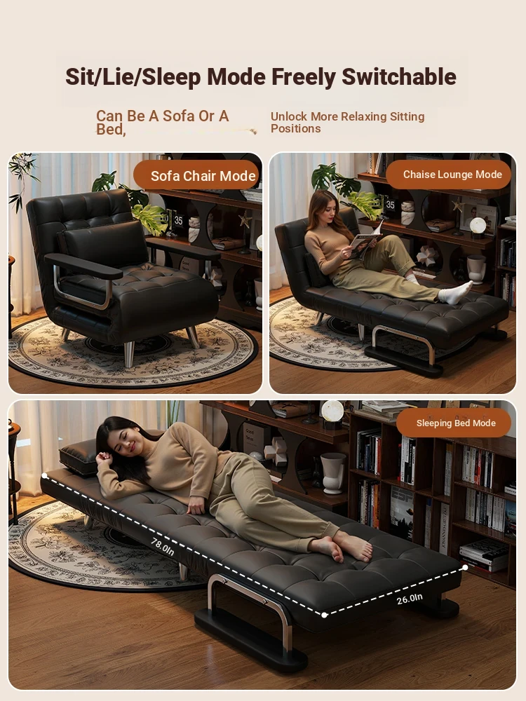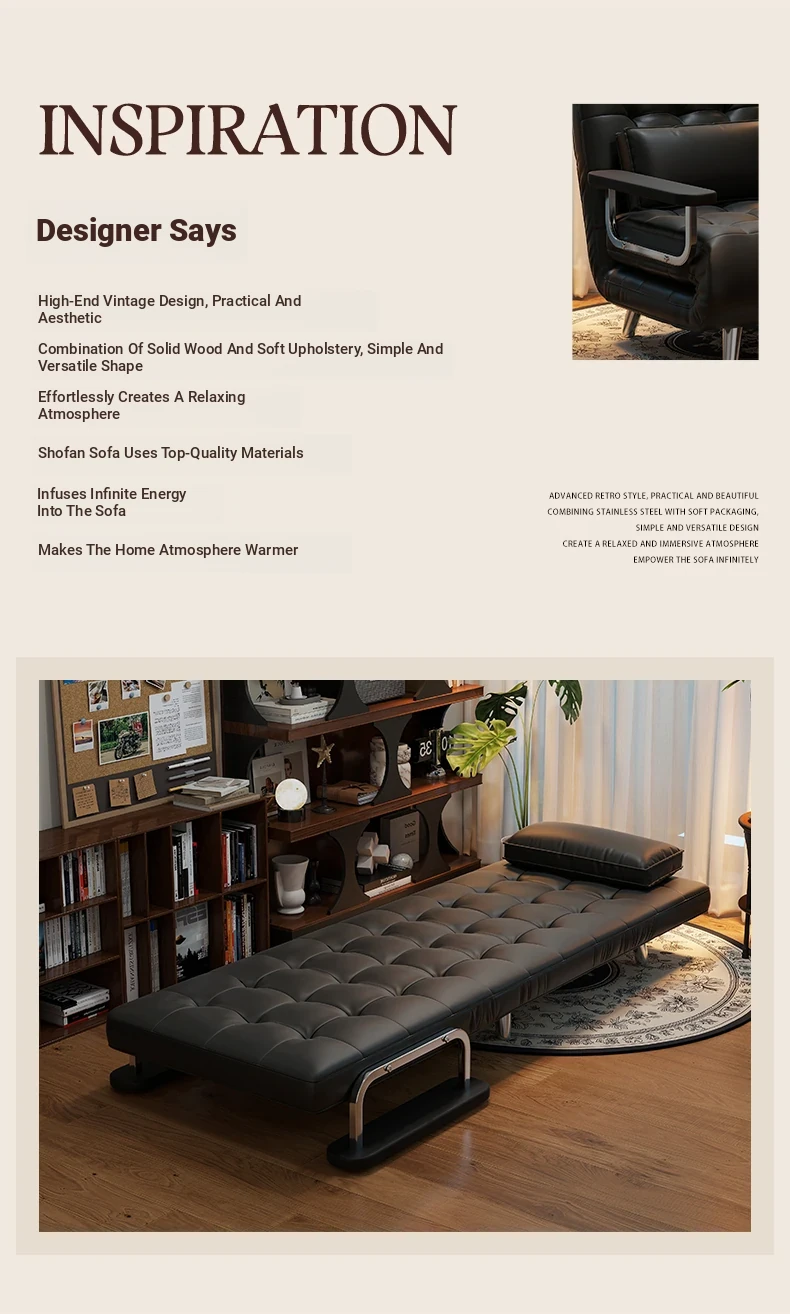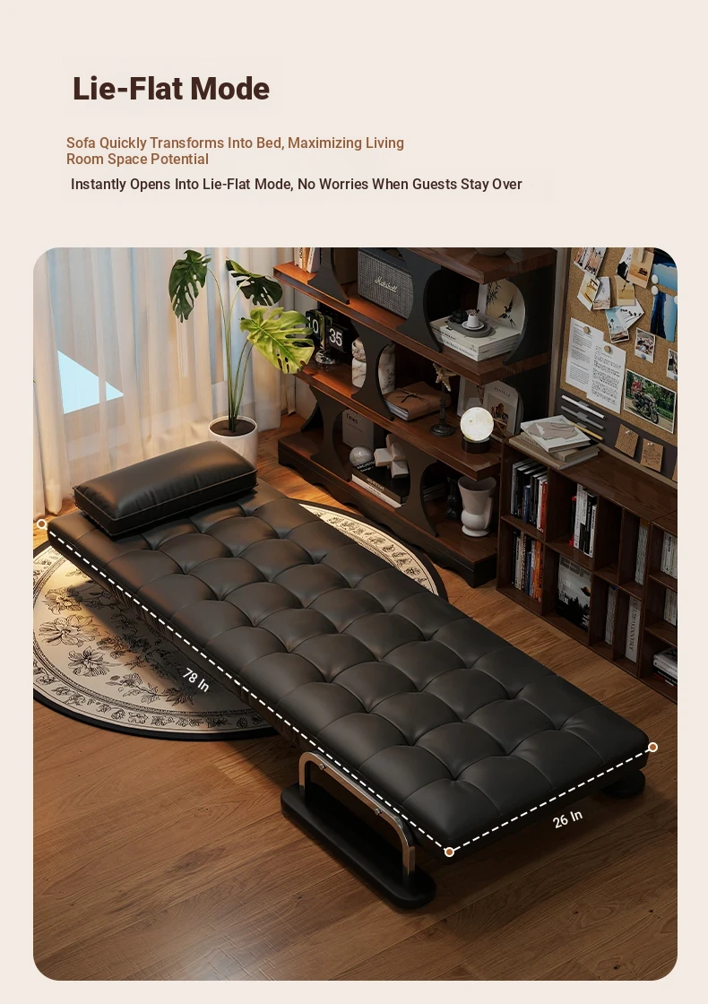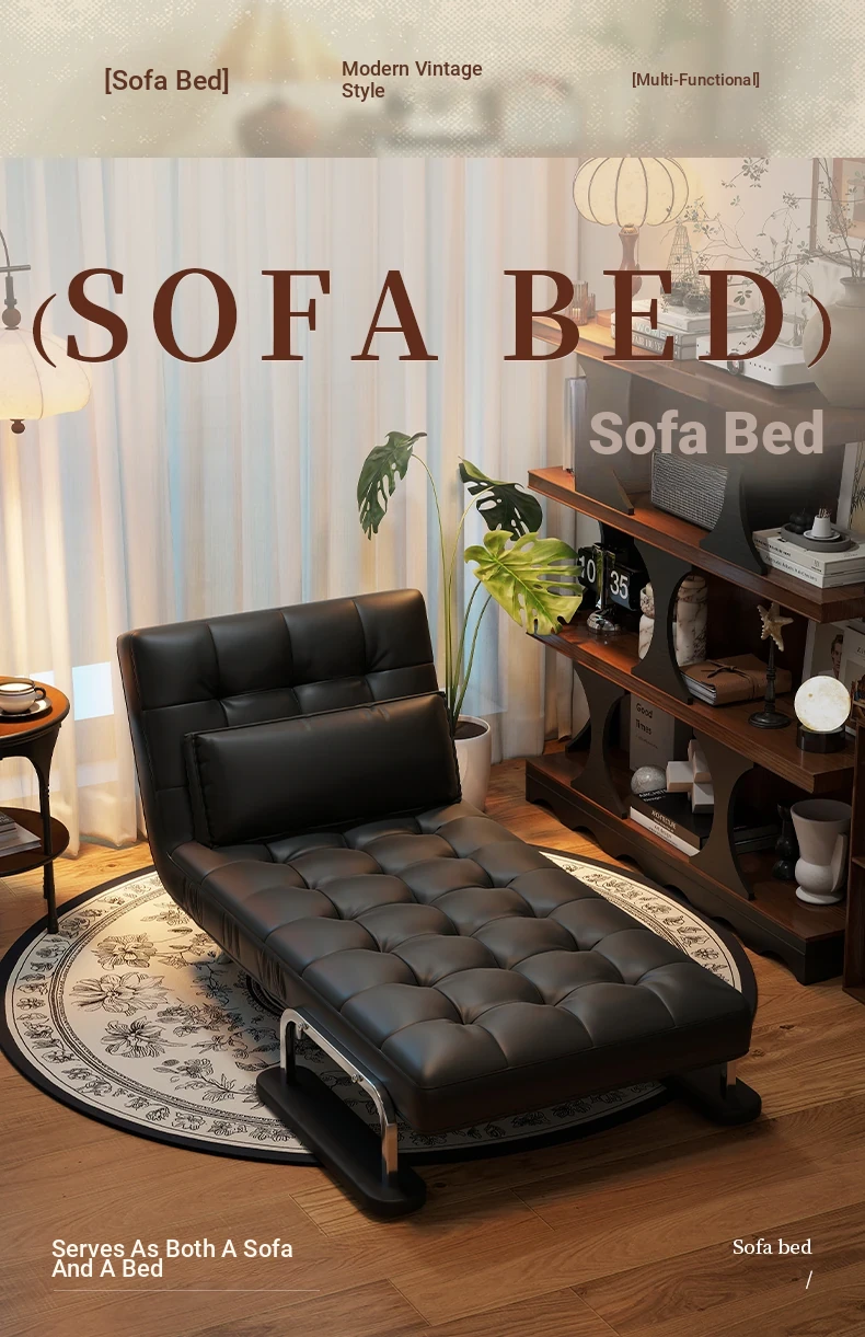 2025 New Vintage Foldable Sofa Bed - Compact Single Design, Retro Black Multifunctional Sofa for Small Spaces
