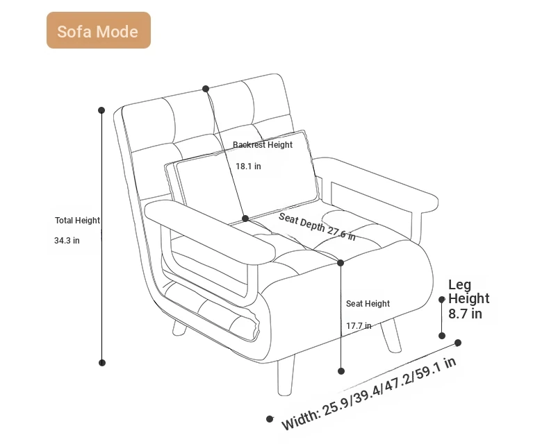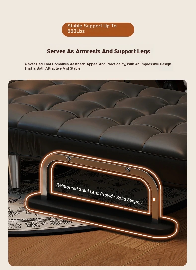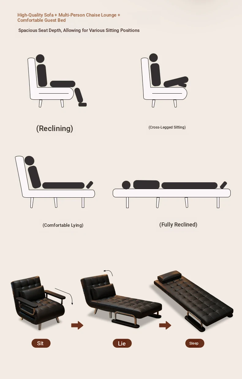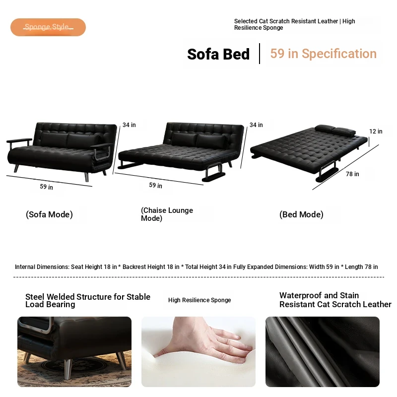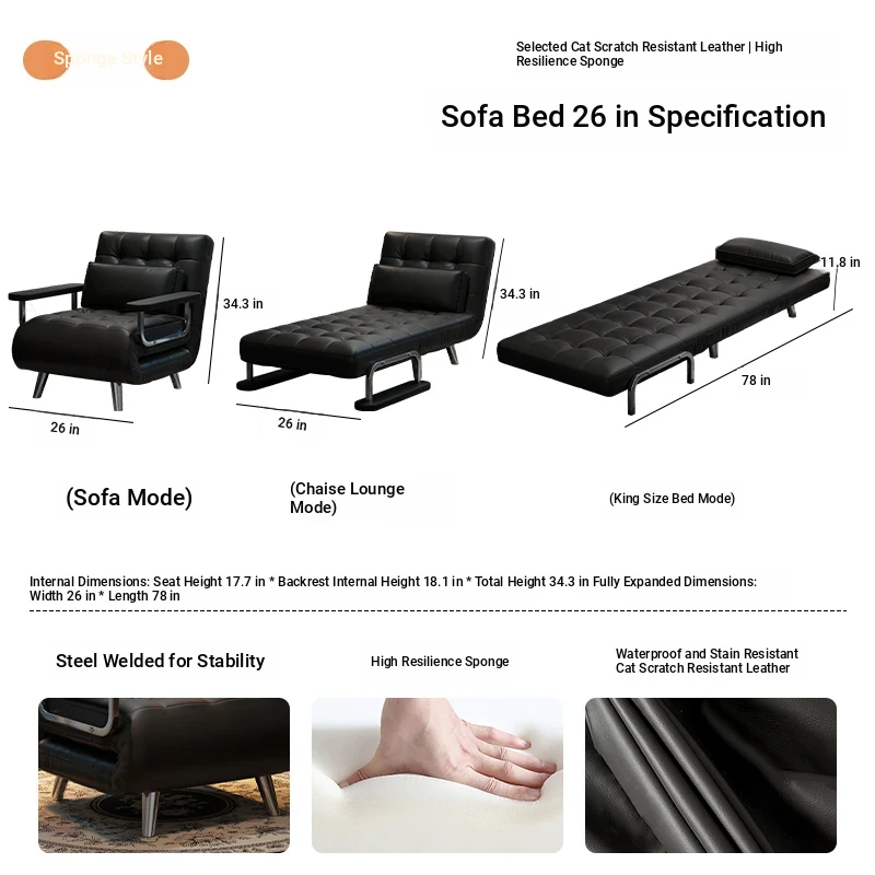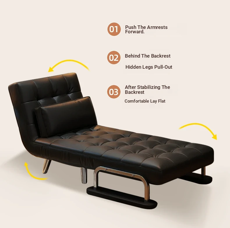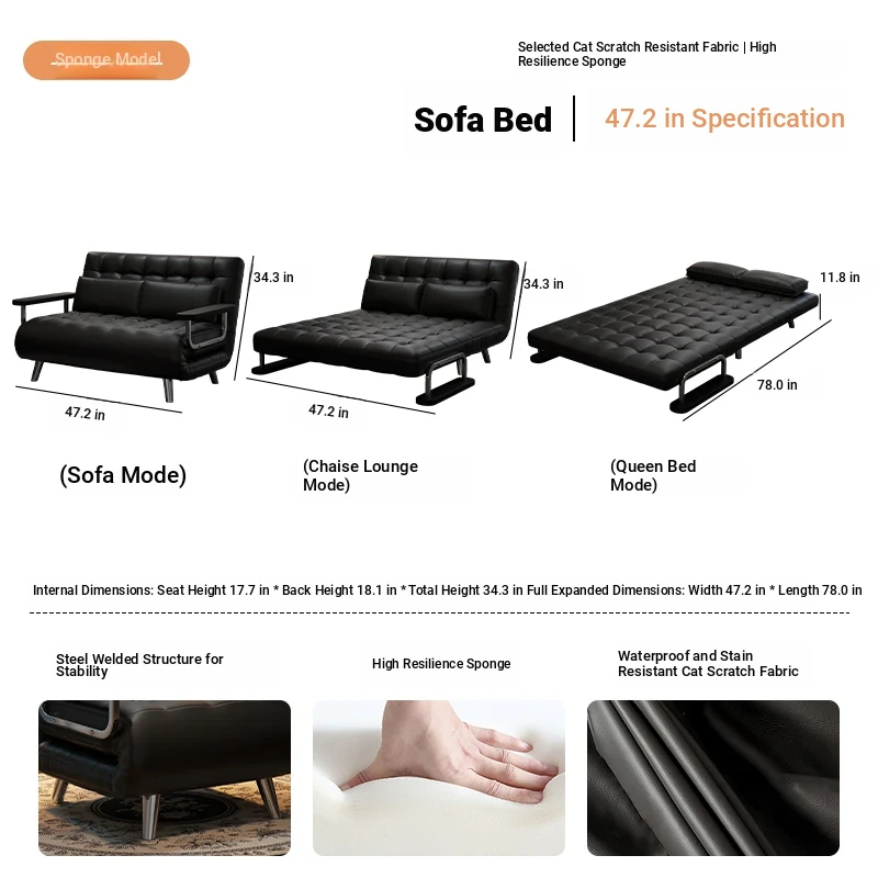 2025 New Vintage Foldable Sofa Bed - Compact Single Design, Retro Black Multifunctional Sofa for Small Spaces