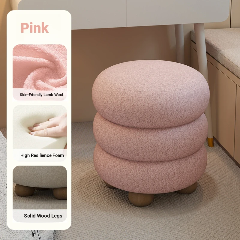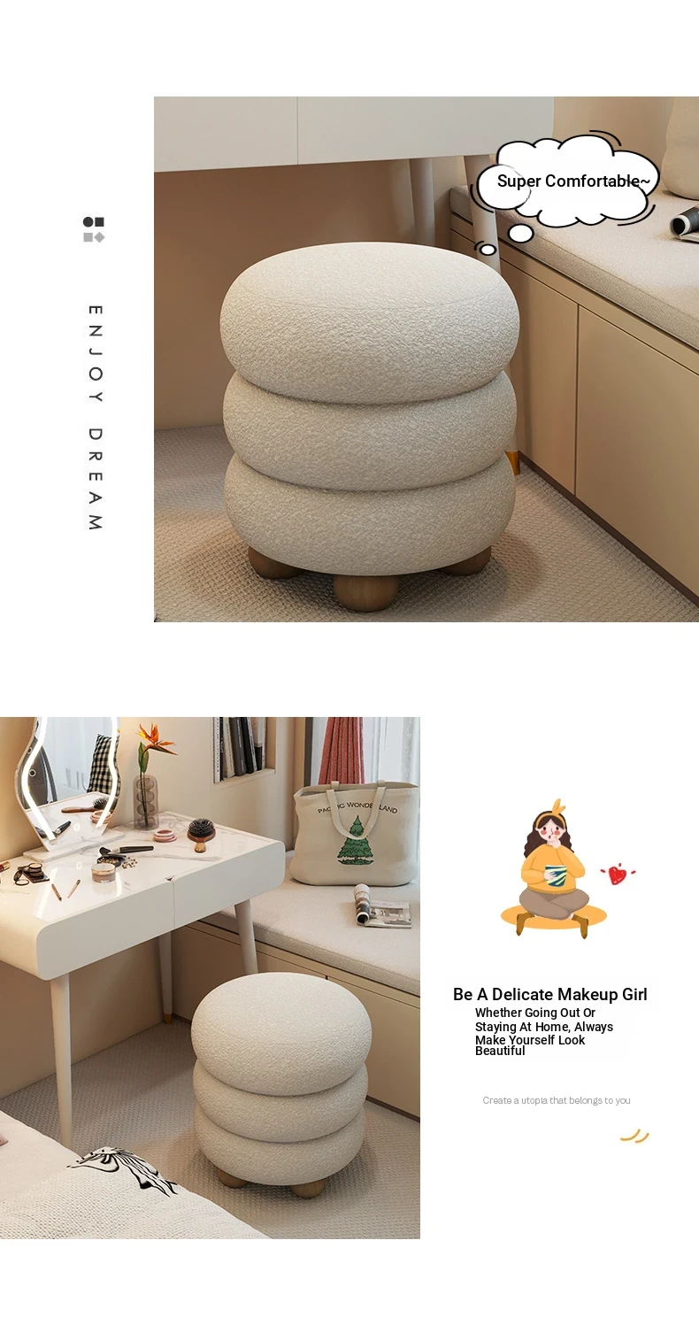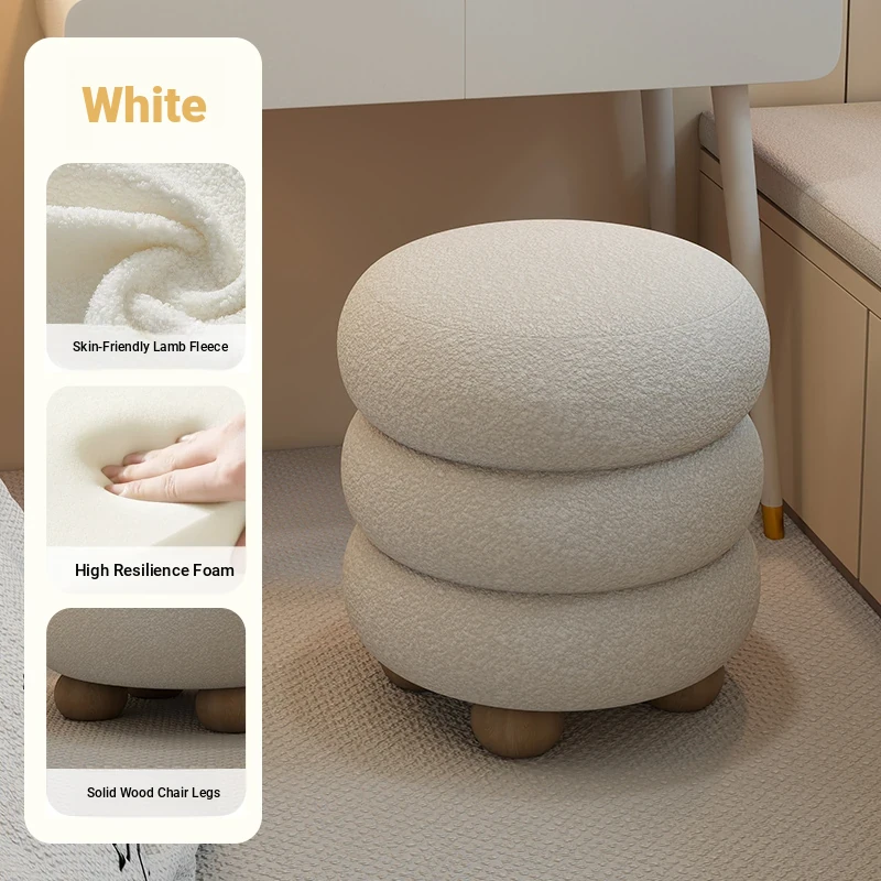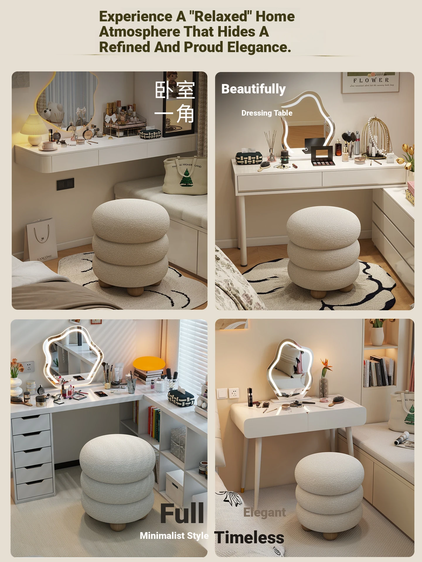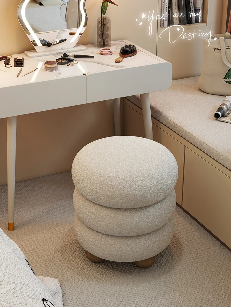 Creamy Aesthetic Makeup Stool - Trendy Ins-Style Dressing Chair for Home, Modern Bedroom Vanity Seat, Cozy Lamb Wool Round Stool