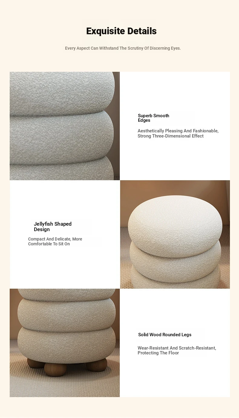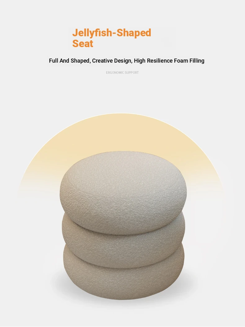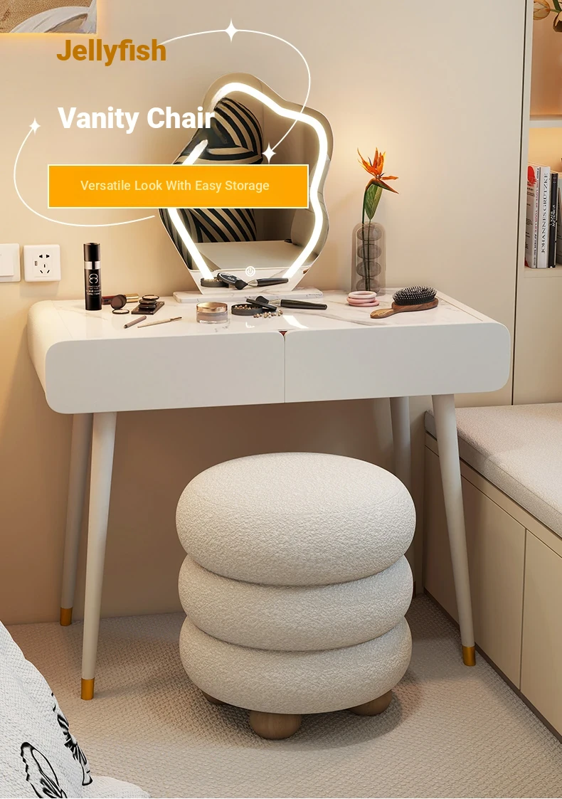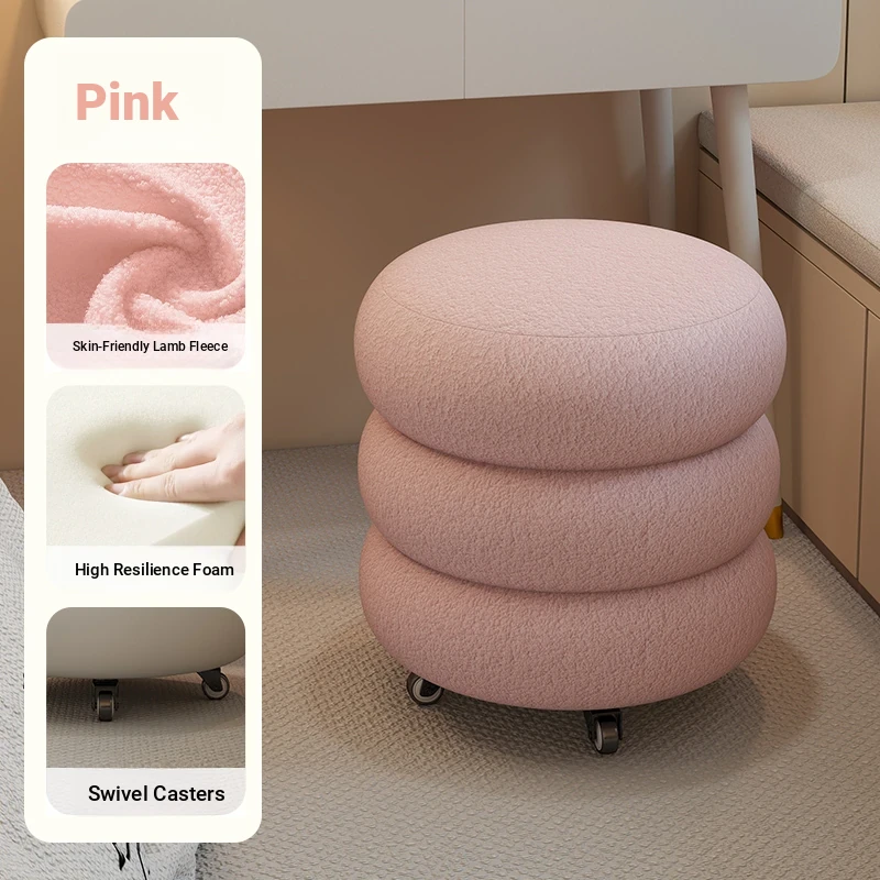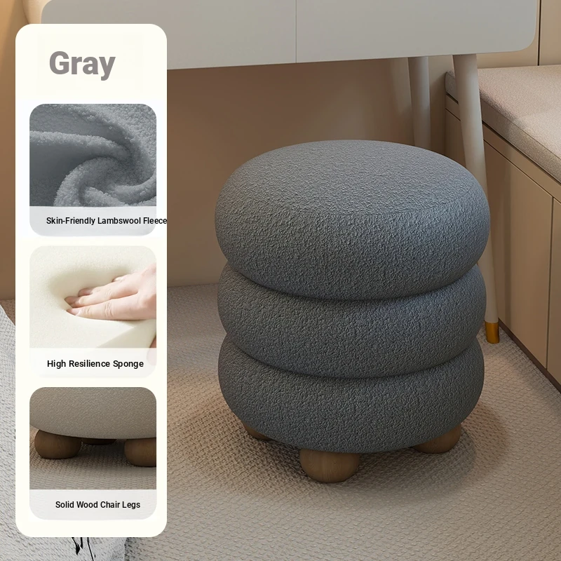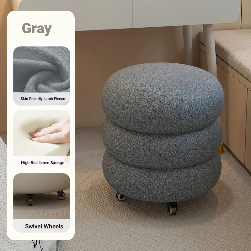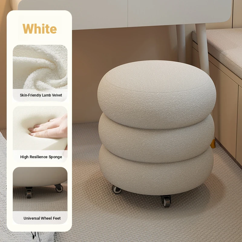 Creamy Aesthetic Makeup Stool - Trendy Ins-Style Dressing Chair for Home, Modern Bedroom Vanity Seat, Cozy Lamb Wool Round Stool