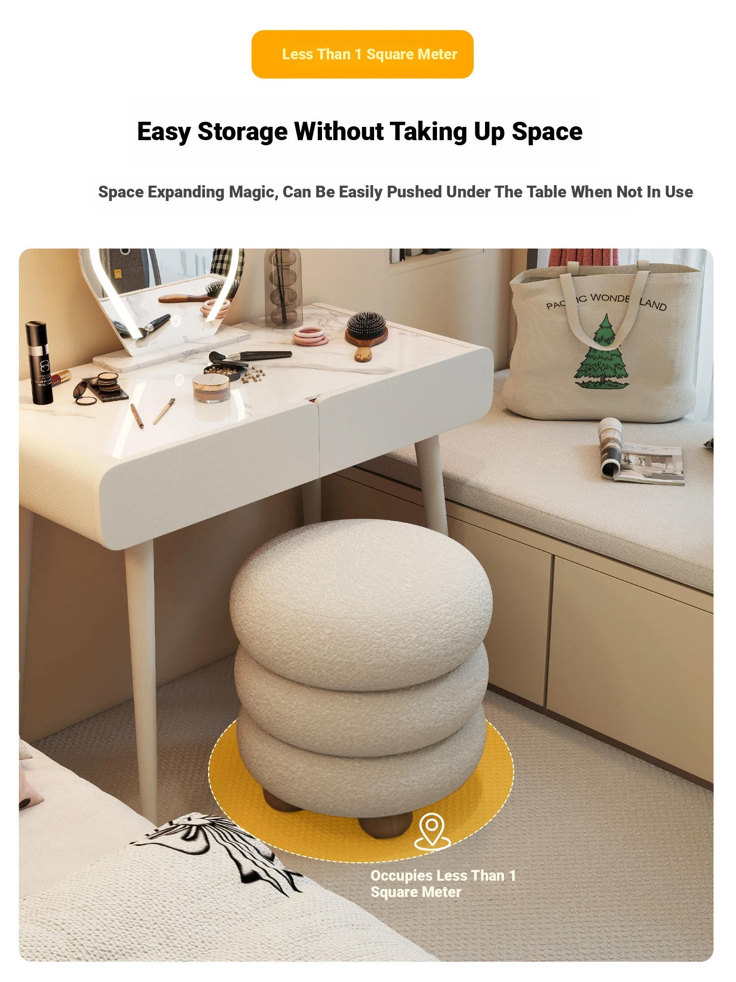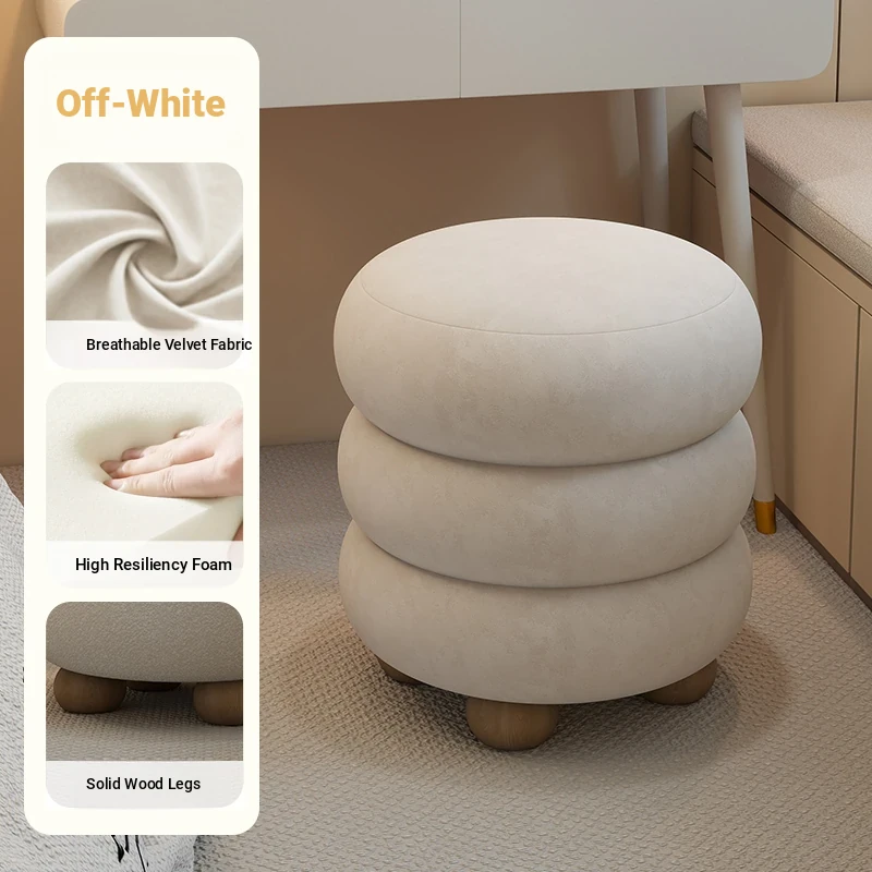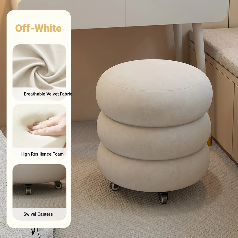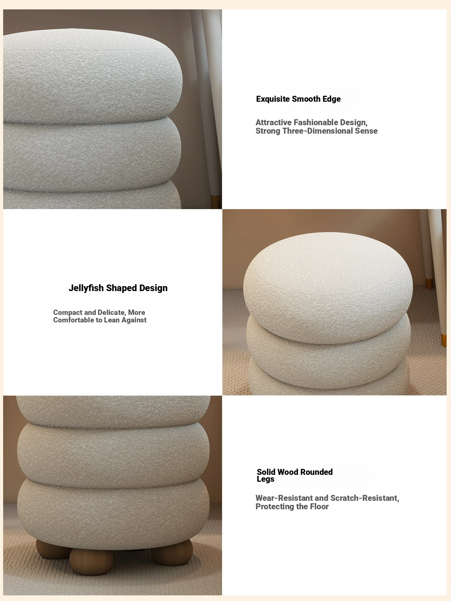 Creamy Aesthetic Makeup Stool - Trendy Ins-Style Dressing Chair for Home, Modern Bedroom Vanity Seat, Cozy Lamb Wool Round Stool