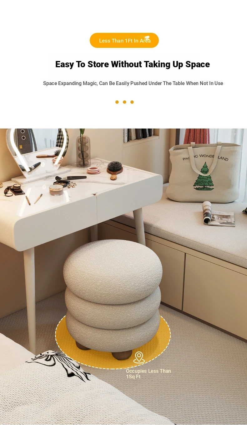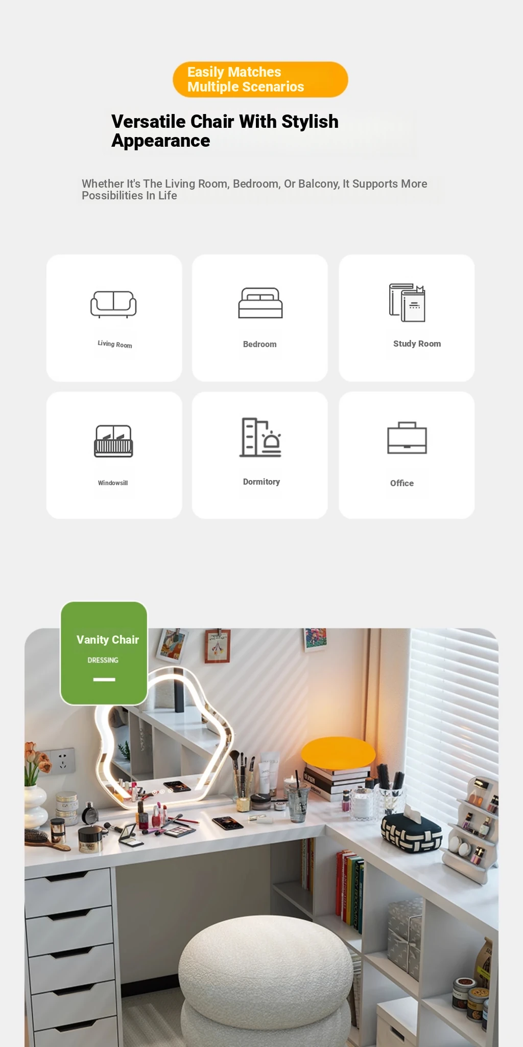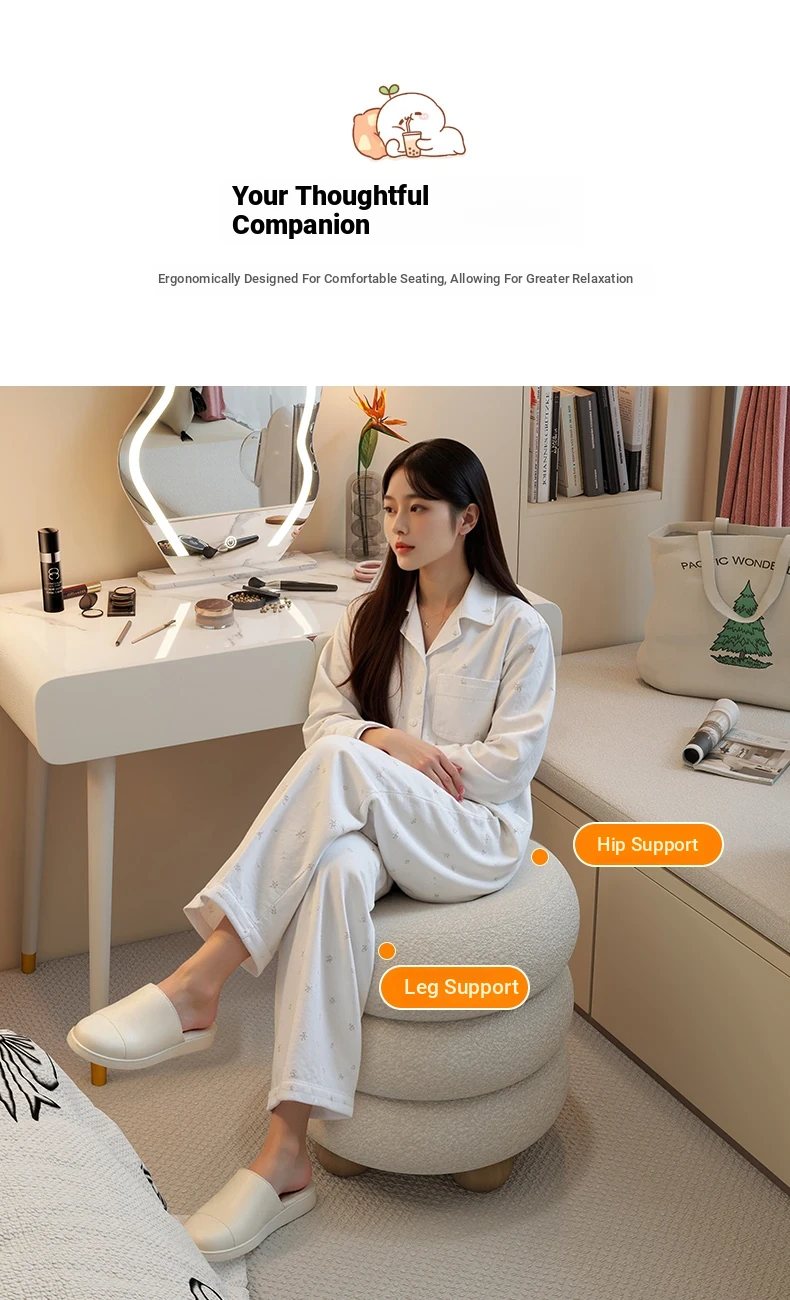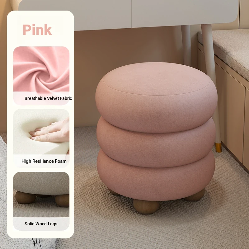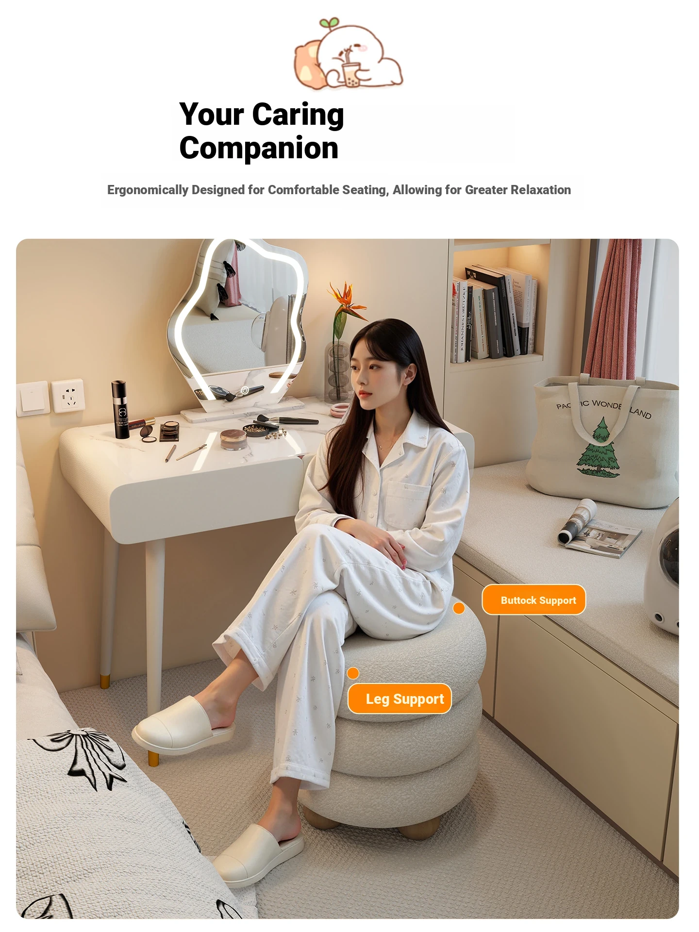 Creamy Aesthetic Makeup Stool - Trendy Ins-Style Dressing Chair for Home, Modern Bedroom Vanity Seat, Cozy Lamb Wool Round Stool