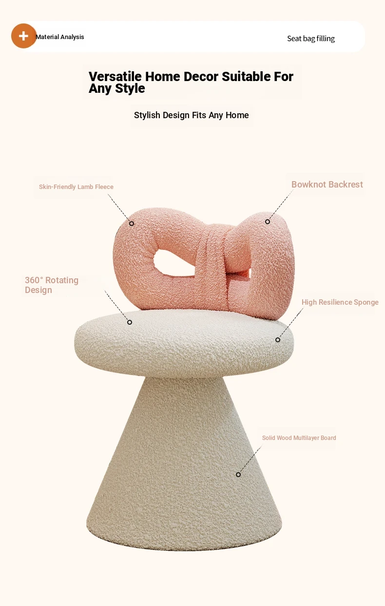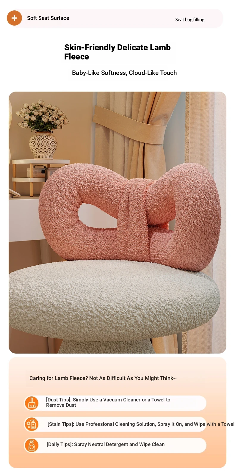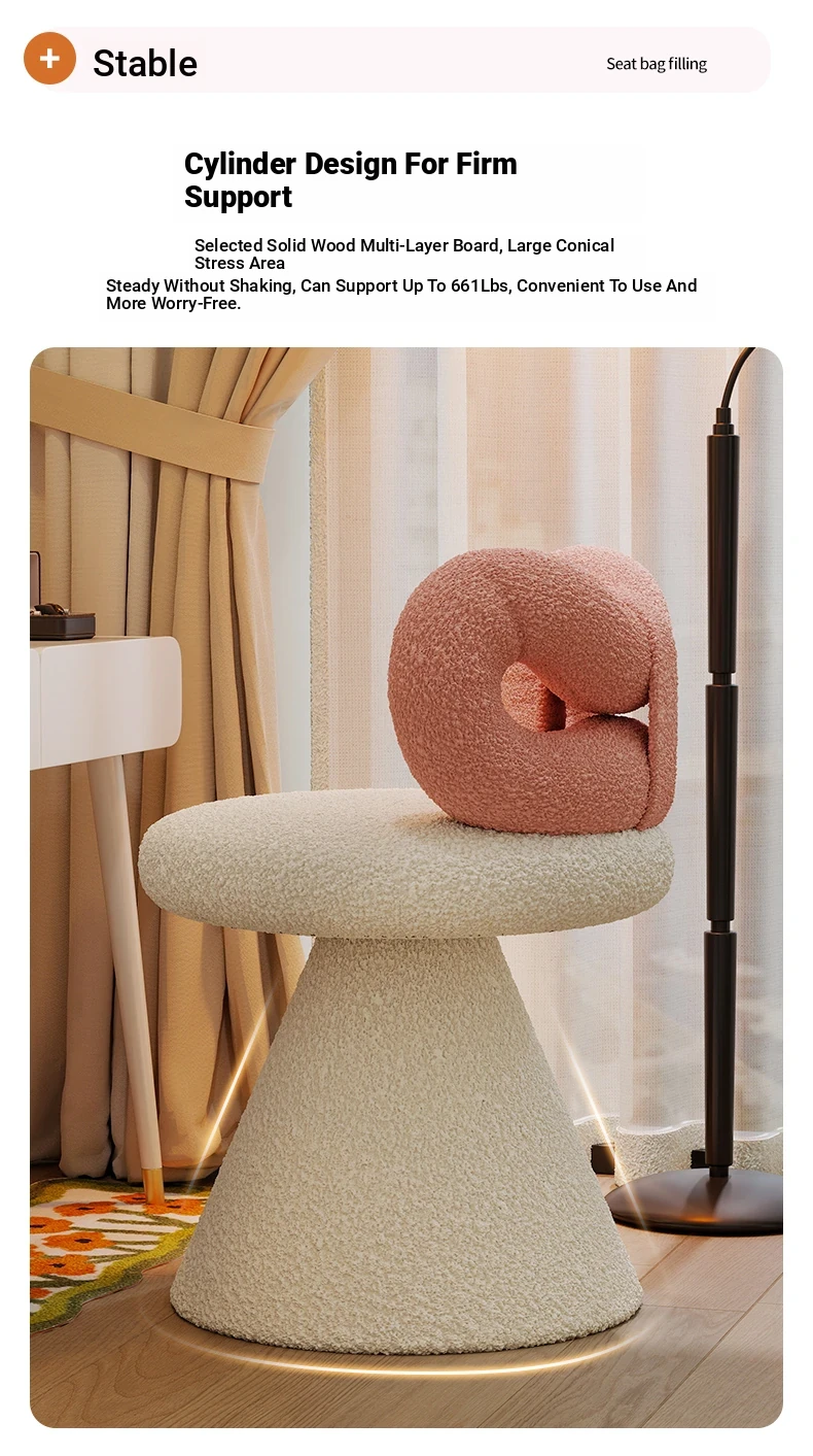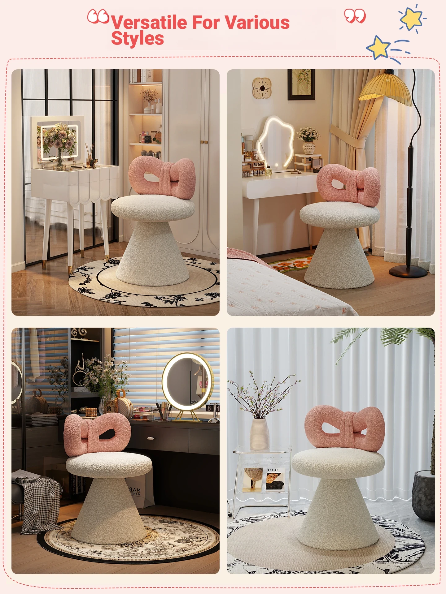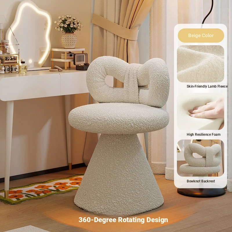 Creamy Makeup Vanity Stool for Women - Modern Minimalist Dressing Table Chair for Bedroom, Elegant and Functional Nail Art Stool