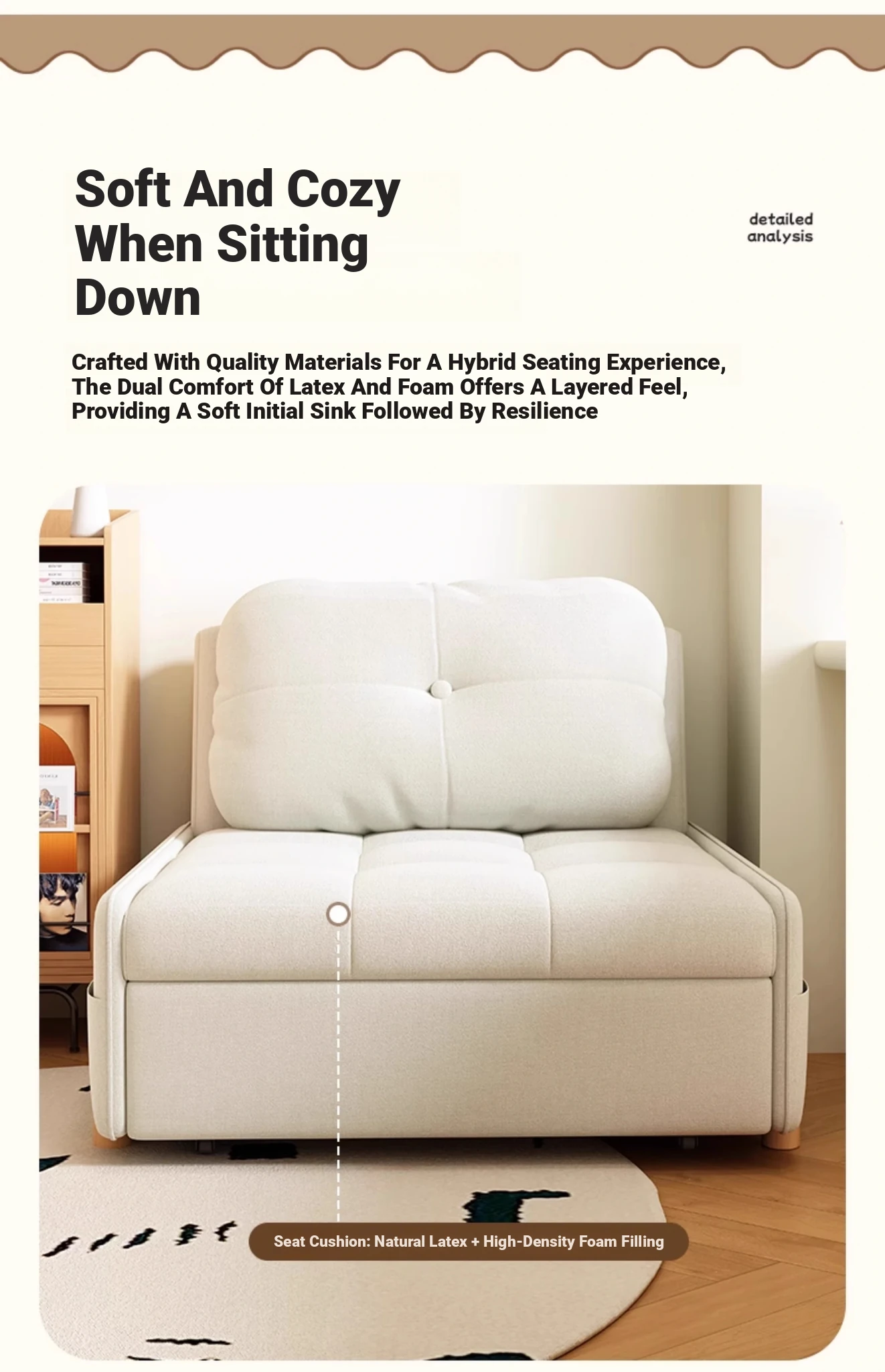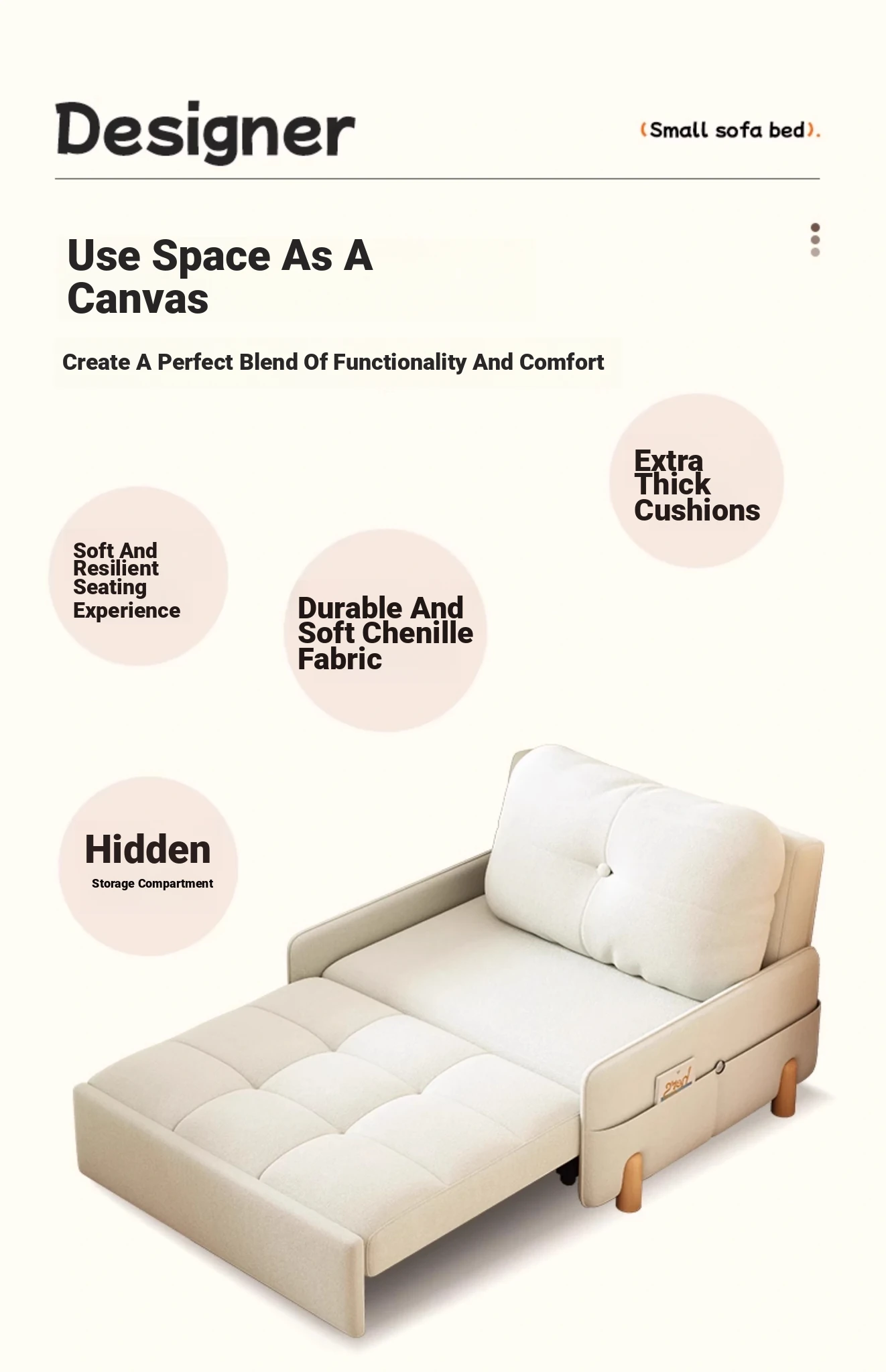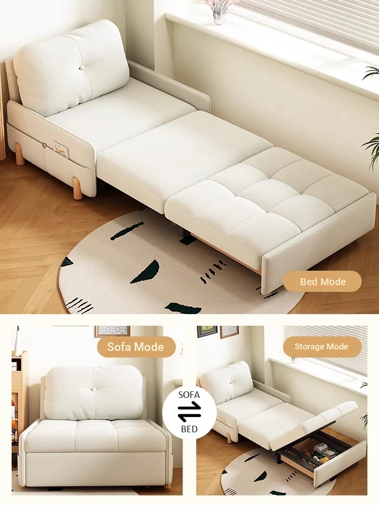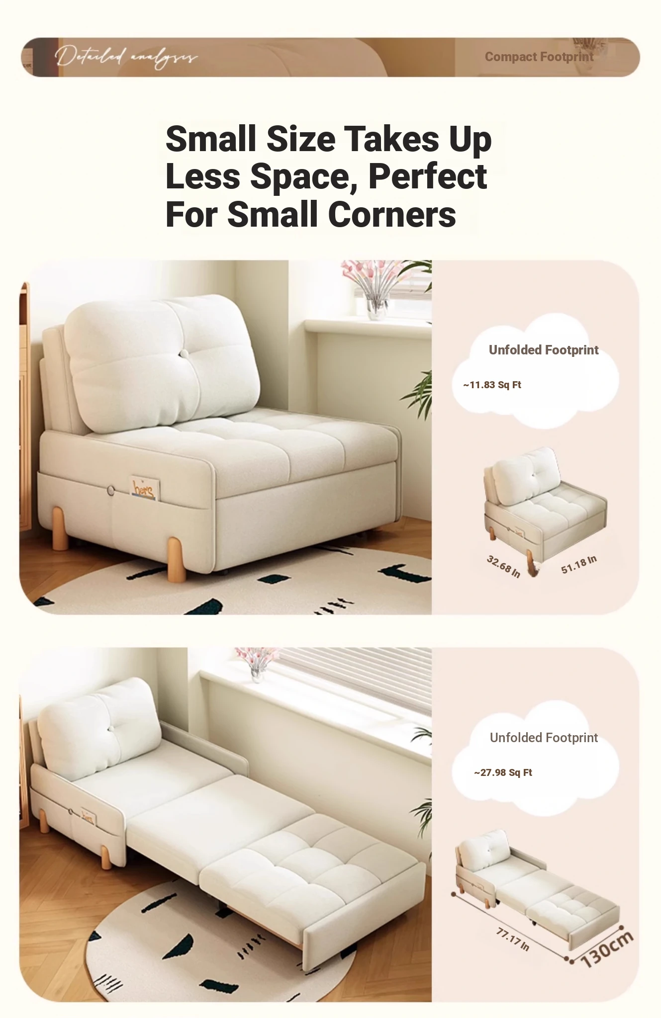 Creamy Style Convertible Sofa Bed - Foldable and Storage-Friendly Multi-Functional Design for Small Living Rooms, Perfect for Couples and Singles, Trendy and Chic!