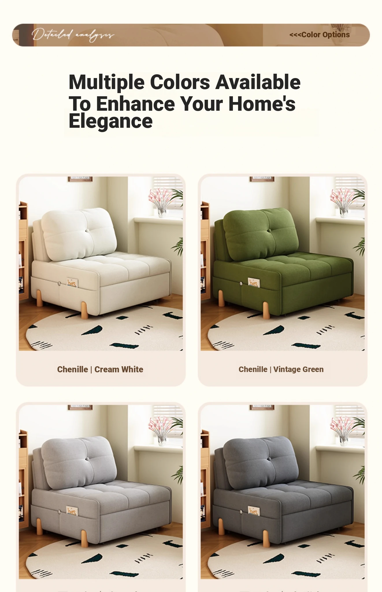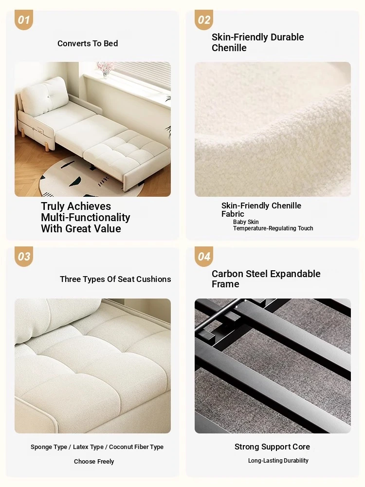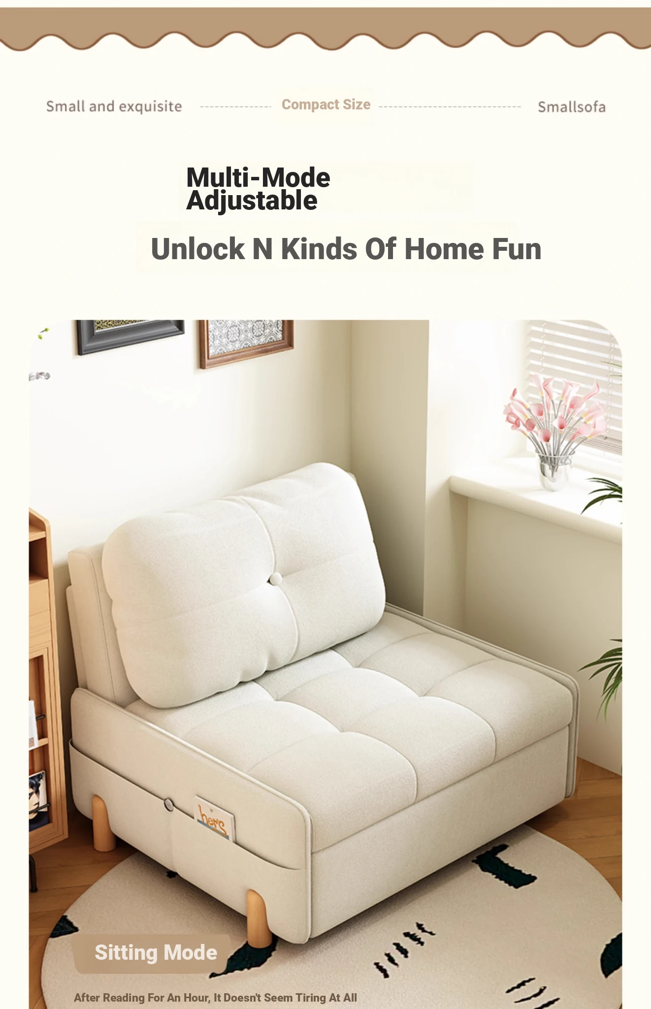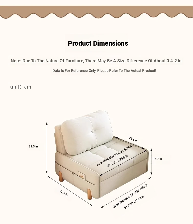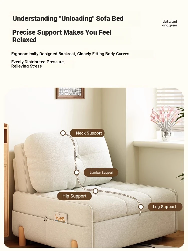 Creamy Style Convertible Sofa Bed - Foldable and Storage-Friendly Multi-Functional Design for Small Living Rooms, Perfect for Couples and Singles, Trendy and Chic!