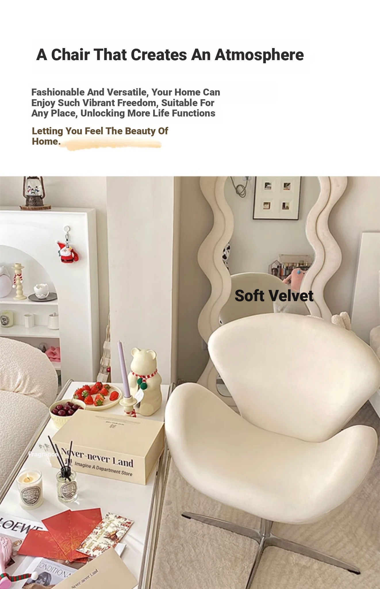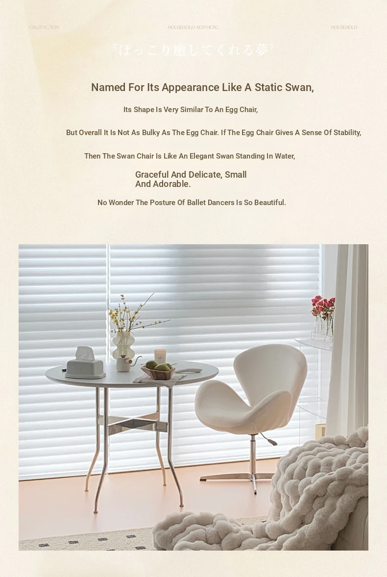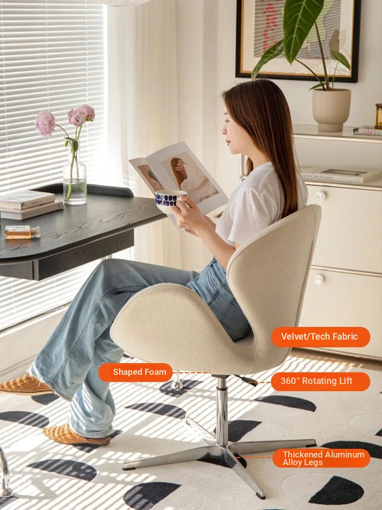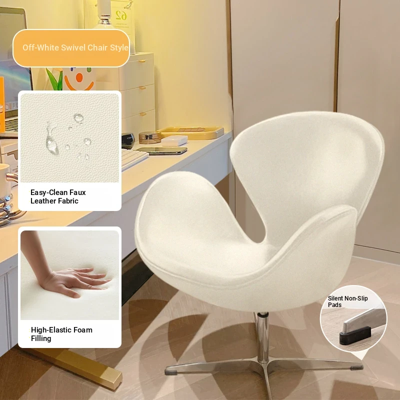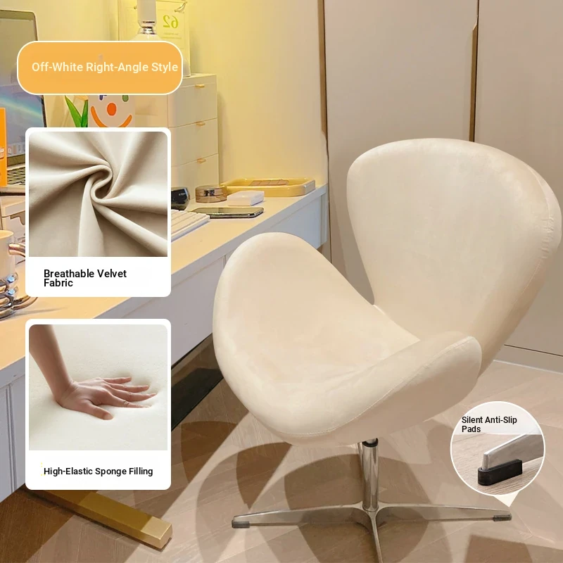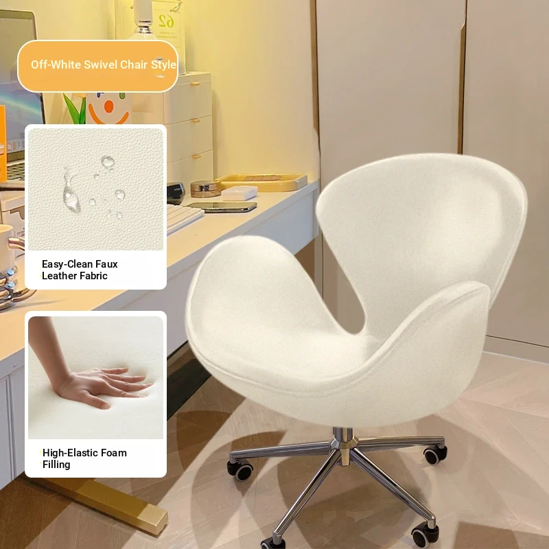 Creamy Swan Chair - Elegant Bedroom Armchair for Makeup and Relaxation, Perfect for Girls. Stylish Vanity Stool, Dining Chair, and Leisure Seat.