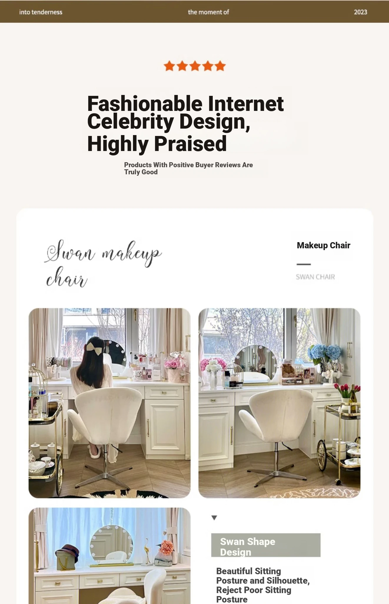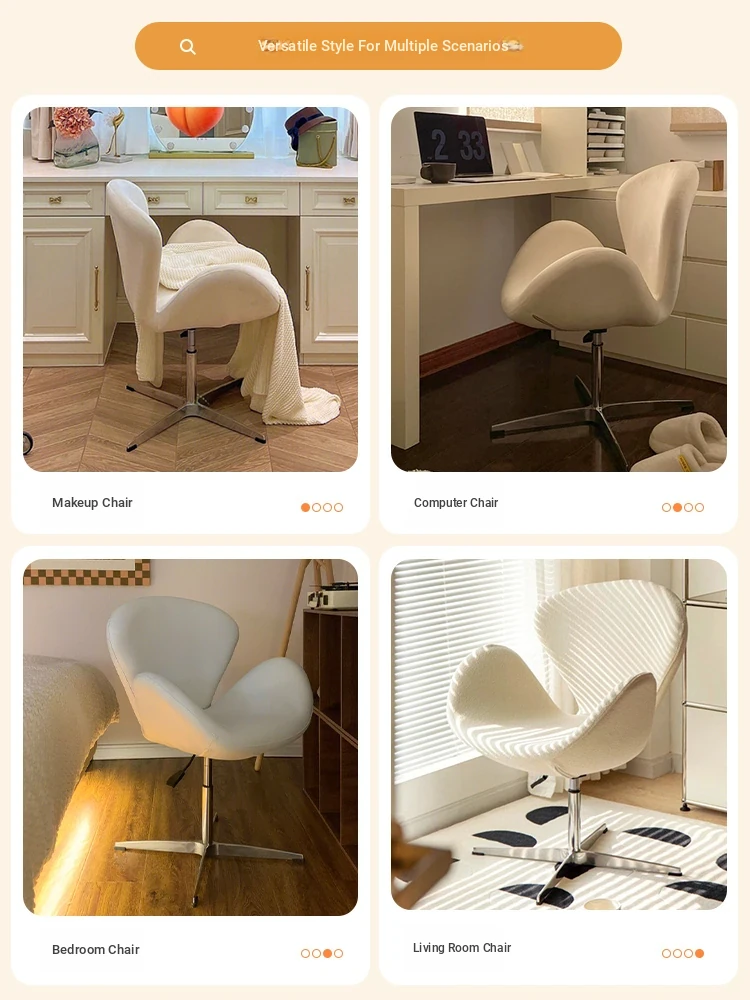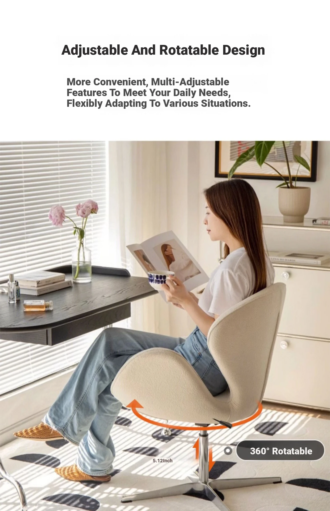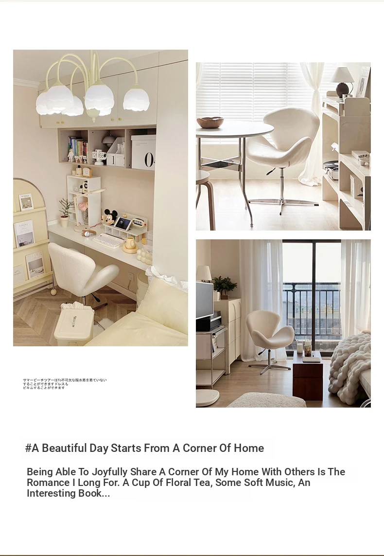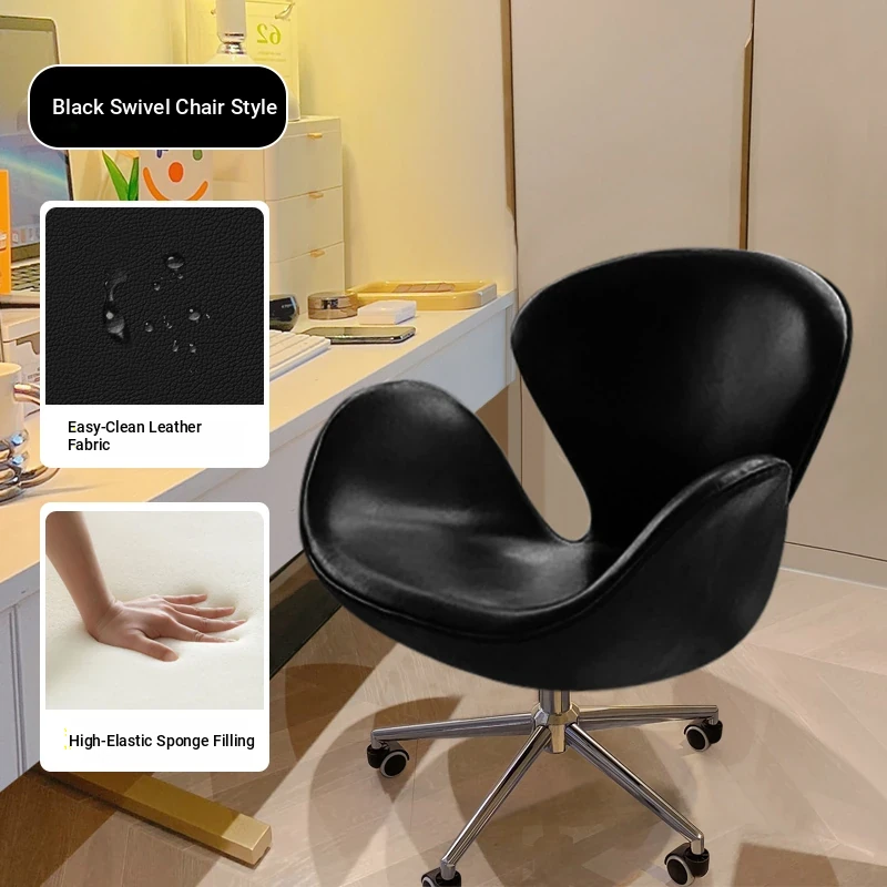 Creamy Swan Chair - Elegant Bedroom Armchair for Makeup and Relaxation, Perfect for Girls. Stylish Vanity Stool, Dining Chair, and Leisure Seat.